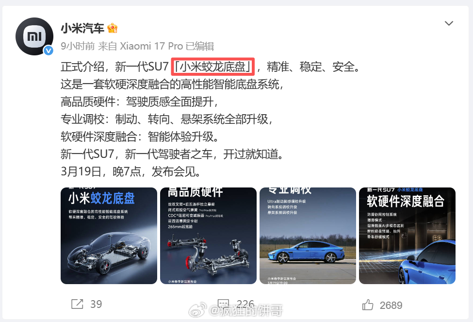 小米的新底盘取名:小米蛟龙底盘,取名怎么样?听起来像一条蛟龙在水中游刃有余,不知道实际是怎么样。新能源汽车