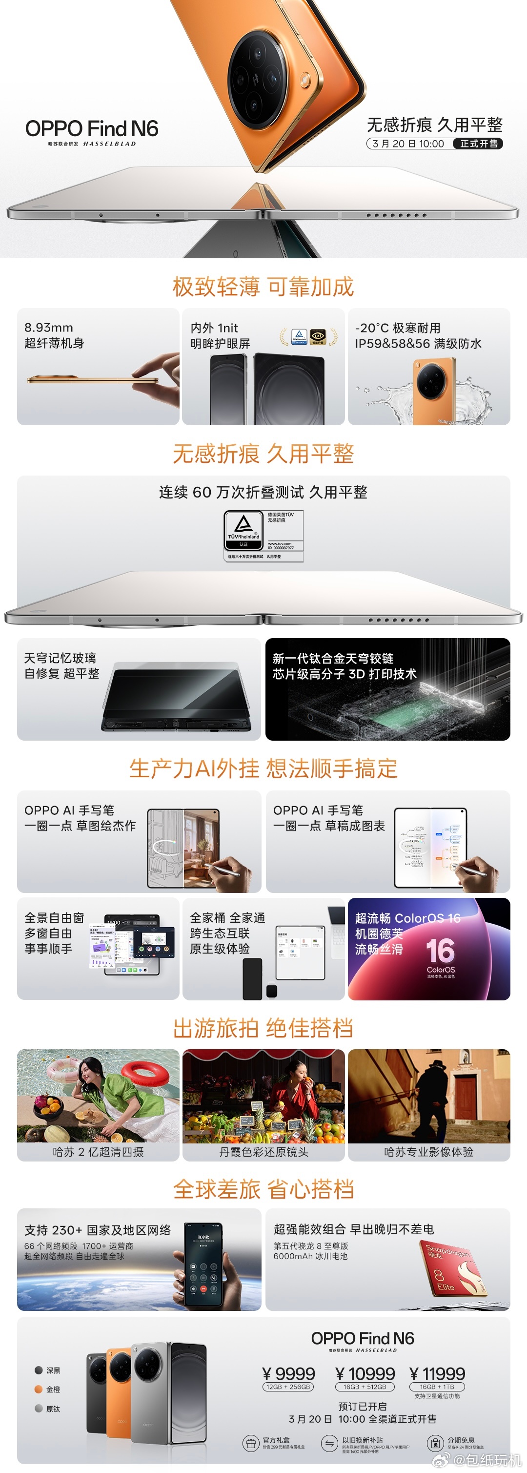 OPPO发布会一图看懂OPPO Find N6,参数和价格都在了。