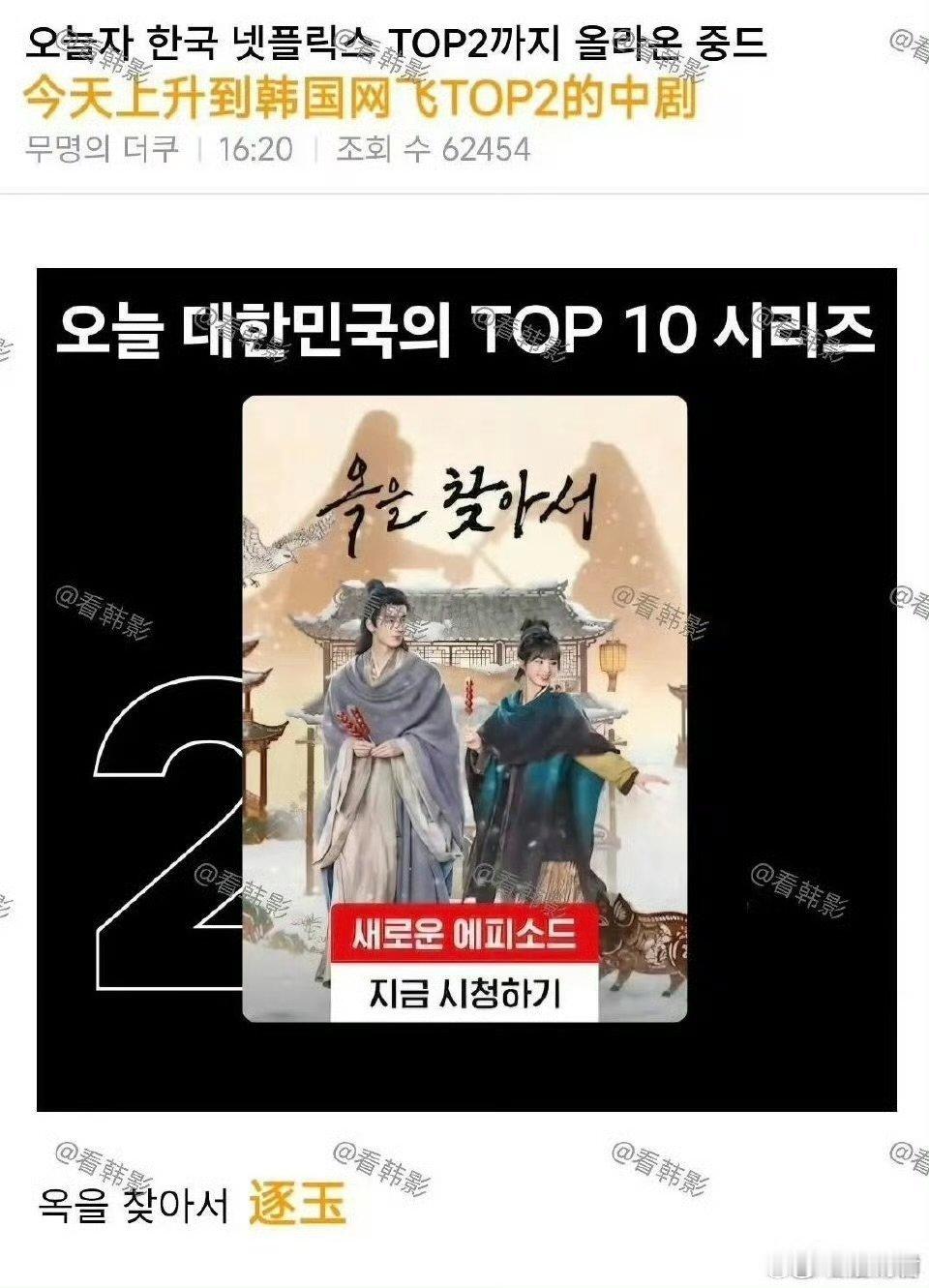 逐玉在韩国网飞冲上剧集榜第二名逐玉在韩国网飞冲上剧集榜第二名还是太火了韩国网友