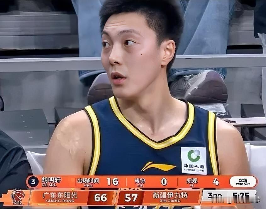 广东男篮核心后卫胡明轩真是来搞笑的!在今晚广东对阵新疆的比赛中,胡明轩三节出战1