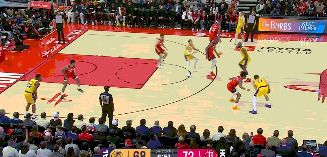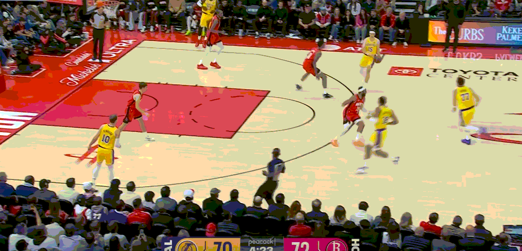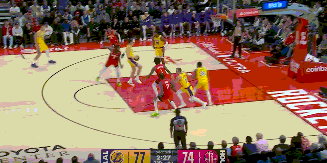 可以看看五小是如何给沉闷的进攻开窗的,所有人充足的腹地空间得以发挥,詹姆斯可以靠背掩护吃谢泼德,八村、小里能压到甜点位中投,东契奇能在没有协防的情况下完成单打,球队可以靠收缩弹性完成反击。