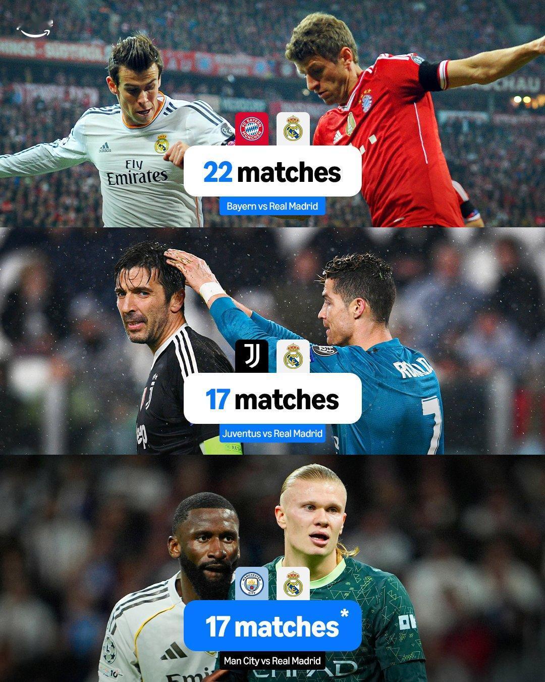 今天曼城对皇马的比赛是双方在欧冠中的第17次碰面,这也追平了皇马在欧冠中对阵尤文的比赛场次。在整个欧冠赛事层面,两支会面次数最多的球队仍然包括皇马,是皇马与拜仁的22次碰面。 所以瓜迪奥拉在赛前的话是对的,别看皇马拿了15次冠军,也要看看皇马踢了多少场欧冠比赛。和冠军和胜利相比,失败才是正常的事情,无非是这次失败下次再尝试罢了。看起来瓜帅对在主场翻盘并没有抱太大希望,不过哀兵必胜,上一轮比赛踢之前谁能料到皇马能大胜呢?[笑哭]