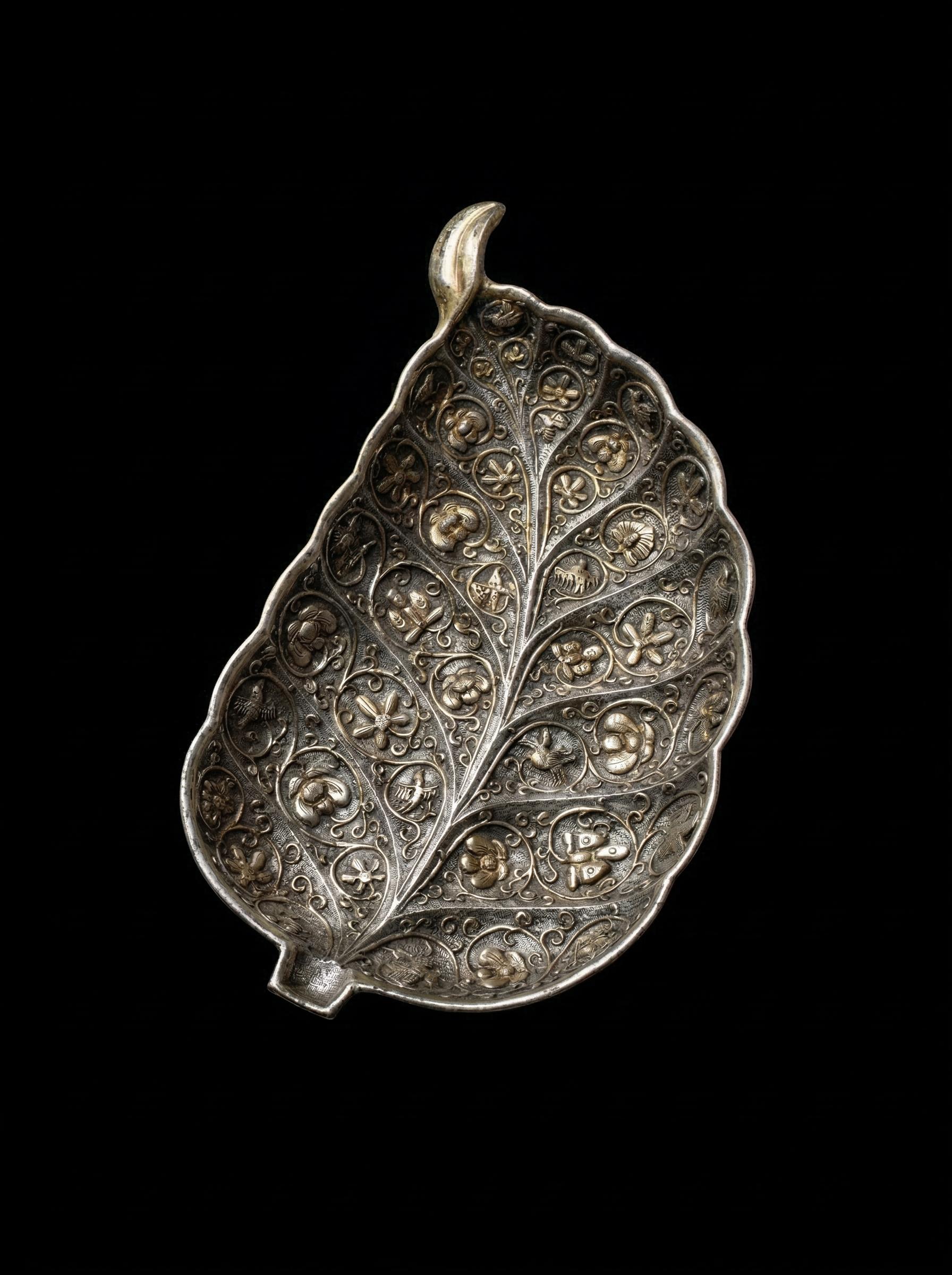 这枚叶形银盘,在结构上呈现出极为舒适的非对称结构与分区