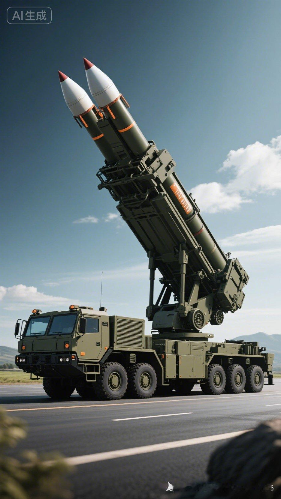 一辆军用卡车拖着导弹,威风凛凛。