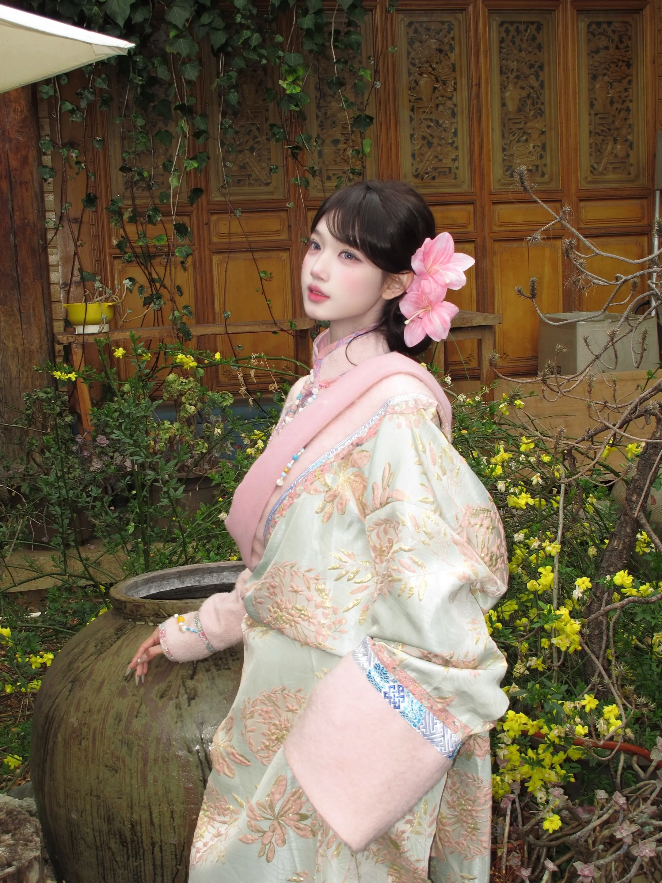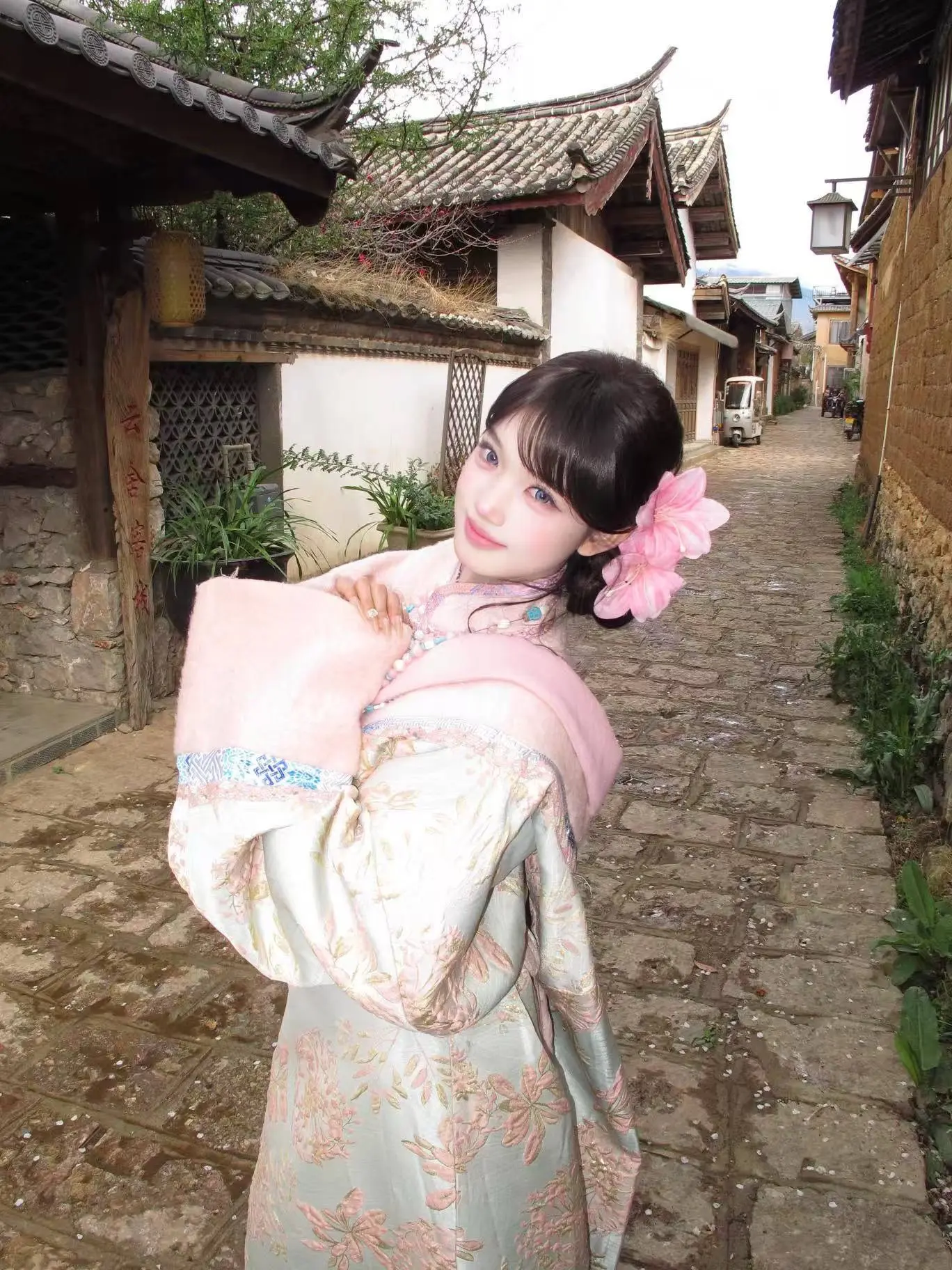 这个穿粉色开叉旗袍的小美女你真的不勒吗?这旗袍也太紧了吧!