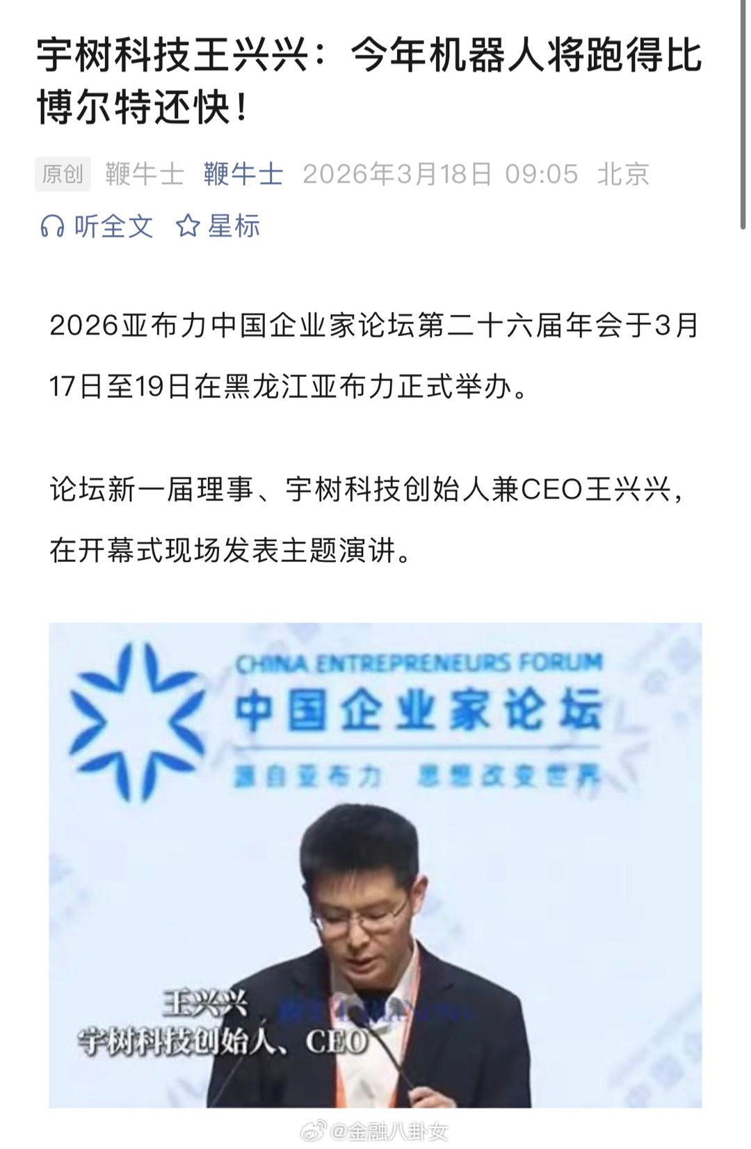 宇树科技王兴兴:今年机器人将跑得比博尔特还快!