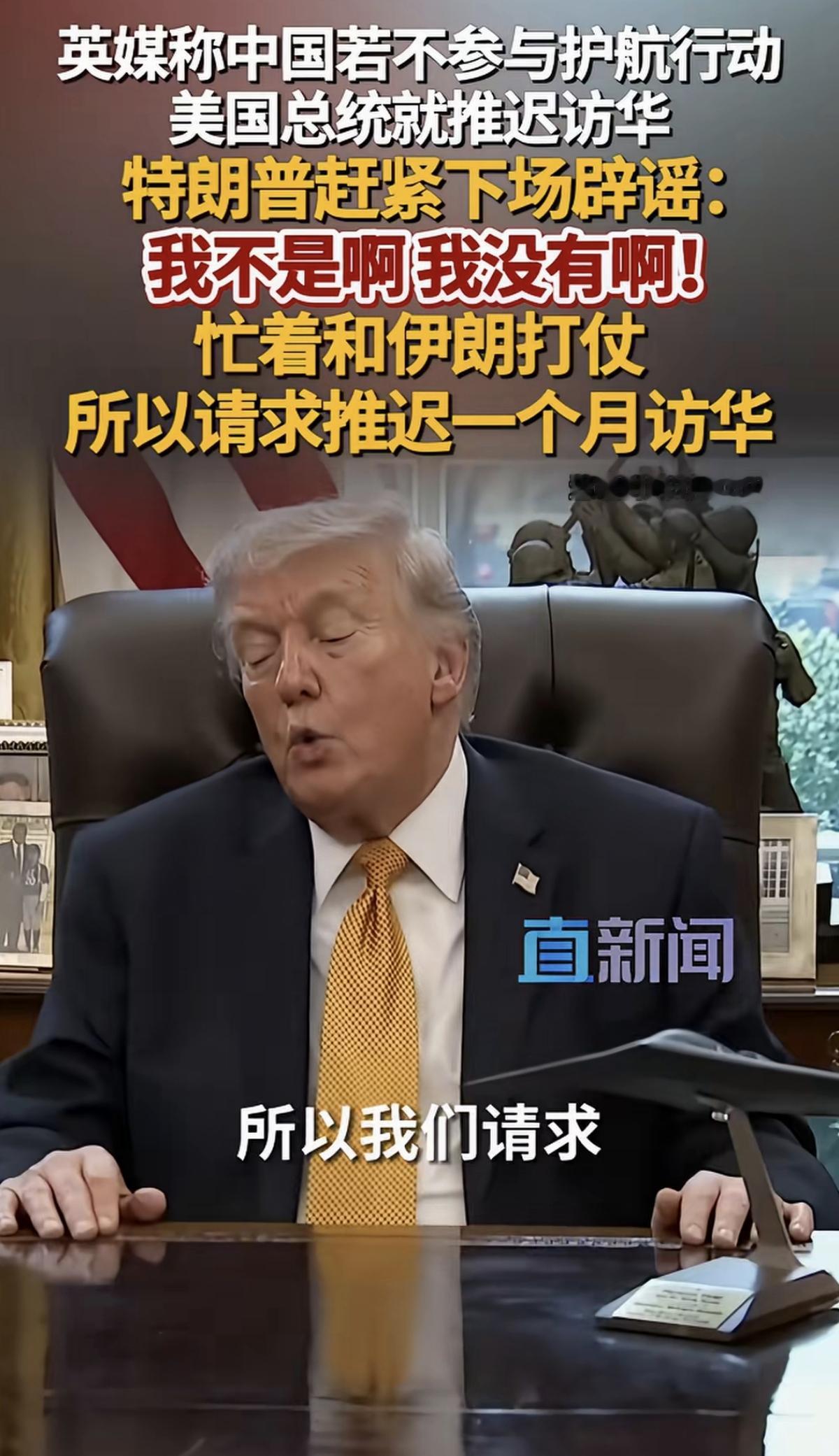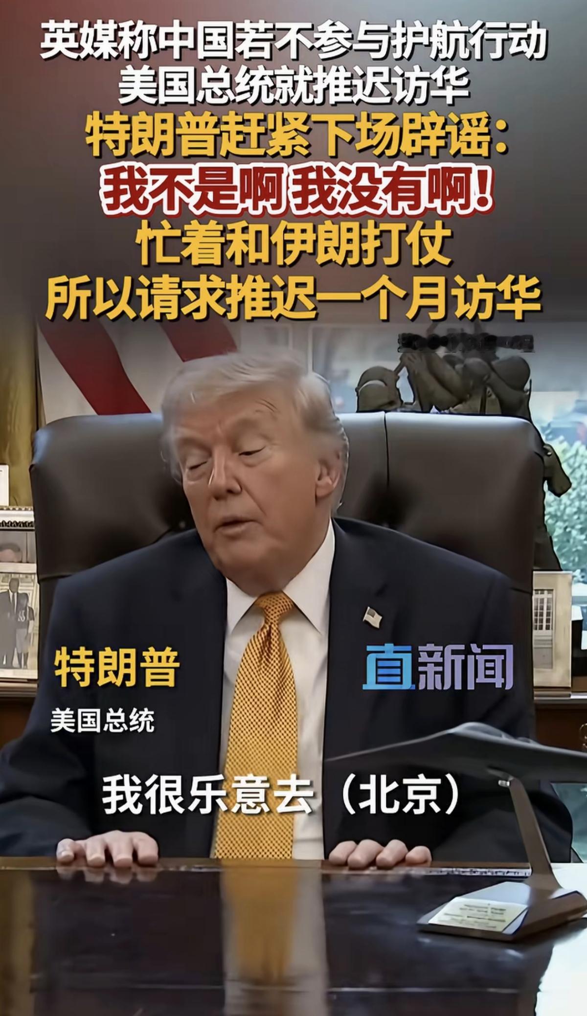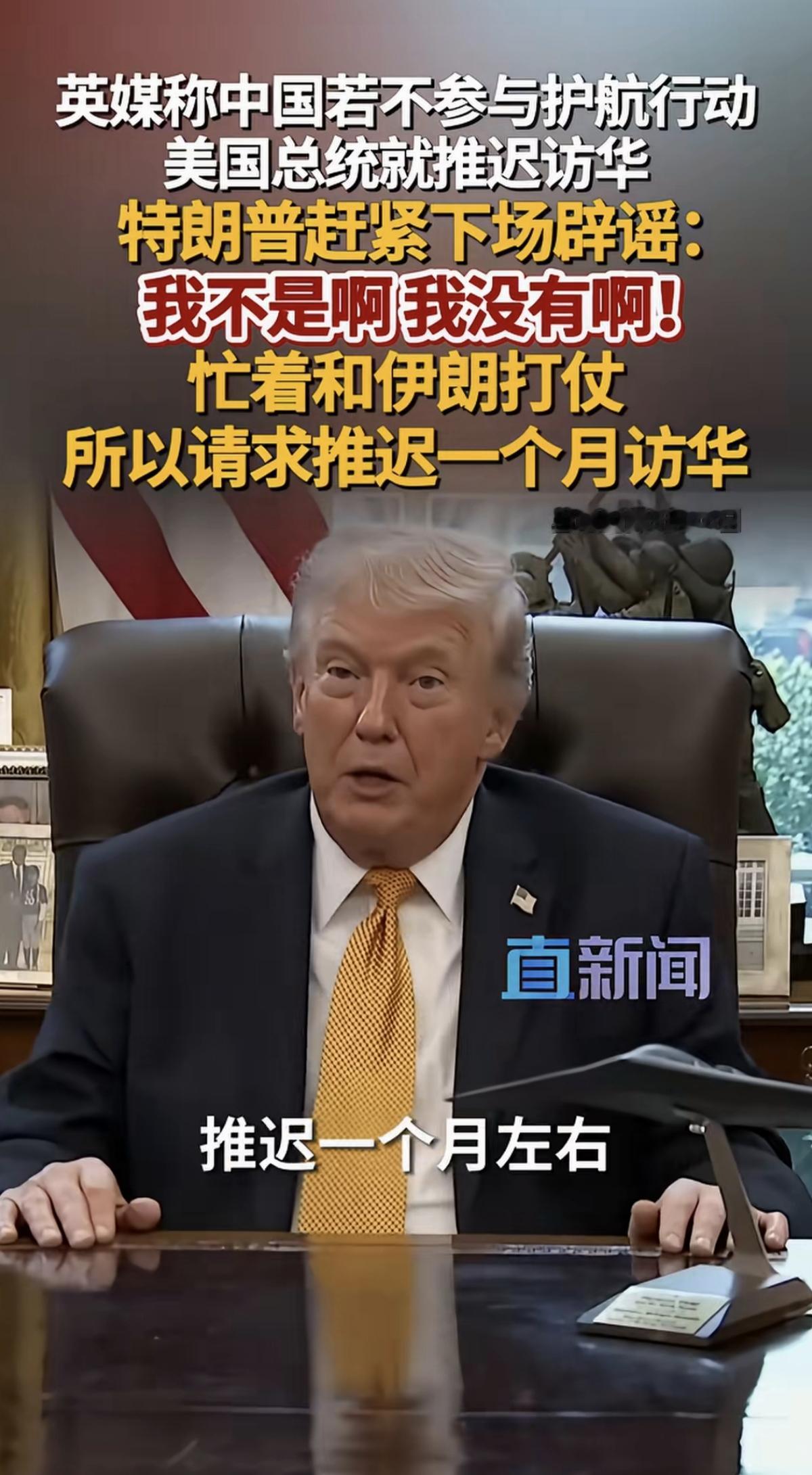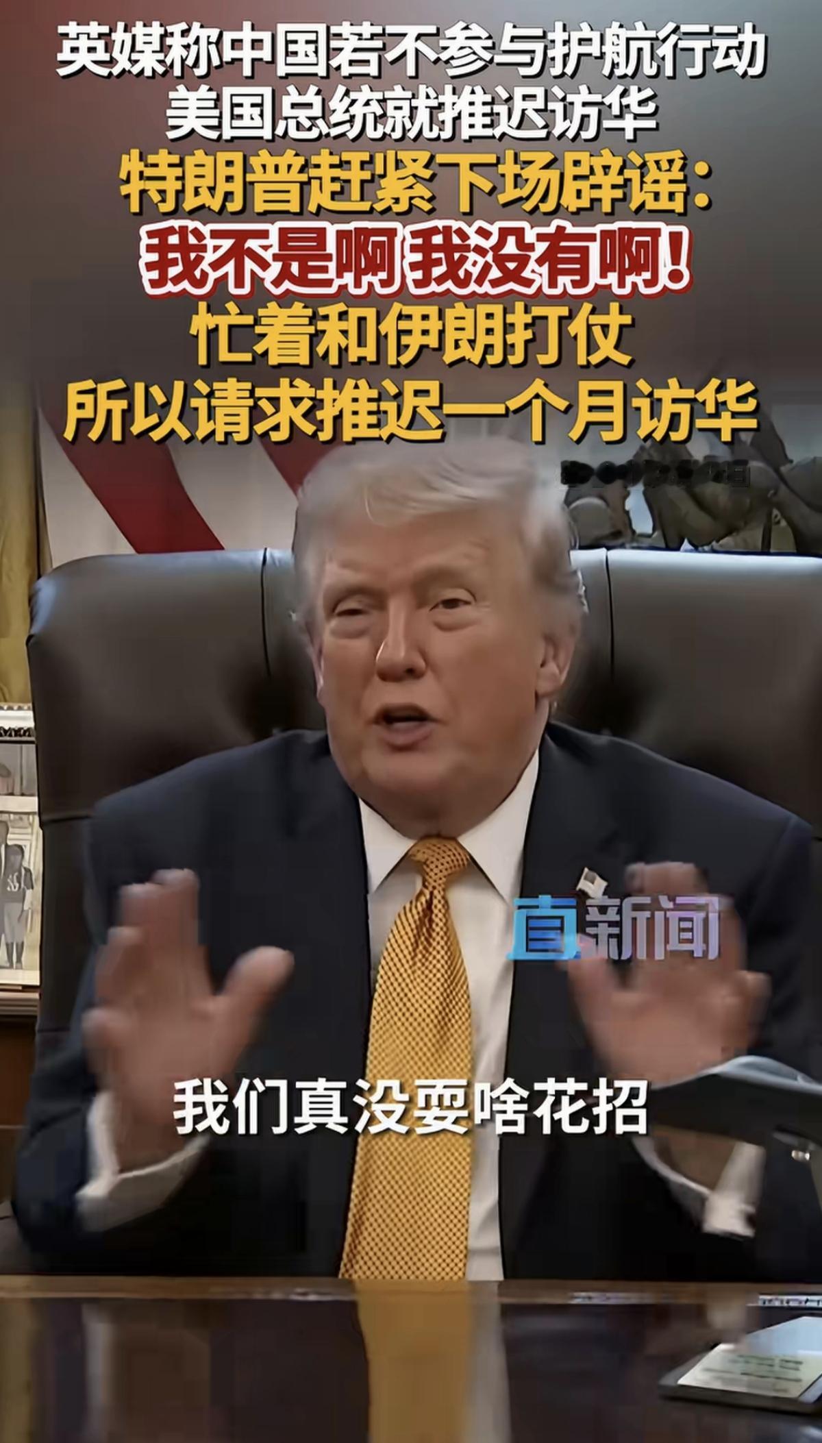 特朗普:我没耍花招,我特别希望去北京,但是现在我必须坐镇白宫! 特朗普最近说了两件事情,第一确实要推迟访华,初步估计推迟一个月,第二,指责日本、韩国等国家,关键时刻袖手旁观,让特朗普很不爽! 特朗普称,推迟访华并不是外界传言的那样,因为中国不出兵去霍尔木兹海峡护航,所以推迟访华,而是现在美军正在作战,自己需要“坐镇”白宫。同时特朗普称推迟访华的事情,是美方向中方发出了请求,意思是中美经过了友好的商量! 第二,特朗普批评日本、韩国、德国等国家,称美军在这些国家驻扎几万士兵,在保护他们,但当美国需要这些国家出动舰艇护航,出动扫雷舰去霍尔木兹海峡扫雷的时候,他们却一个也不来!看起来特朗普非常不满意。 现在特朗普终于明白了,美国已经不是以前那个美国了,不仅不再“一呼百应”,而是已经指挥不动传统盟友了,美国的影响力正在迅速下滑,在这样的情况下美国继续与中国对抗没有好结果,所以我们看到特朗普在推迟访华的问题上表示是自己“请求”了中方,姿态放得特别低! 也许,这次与伊朗一战之后,美方会重新审视自己的盟友、检讨自己的战略,在对华方针上做出重大调整,开始加强合作而不是继续搞对抗。