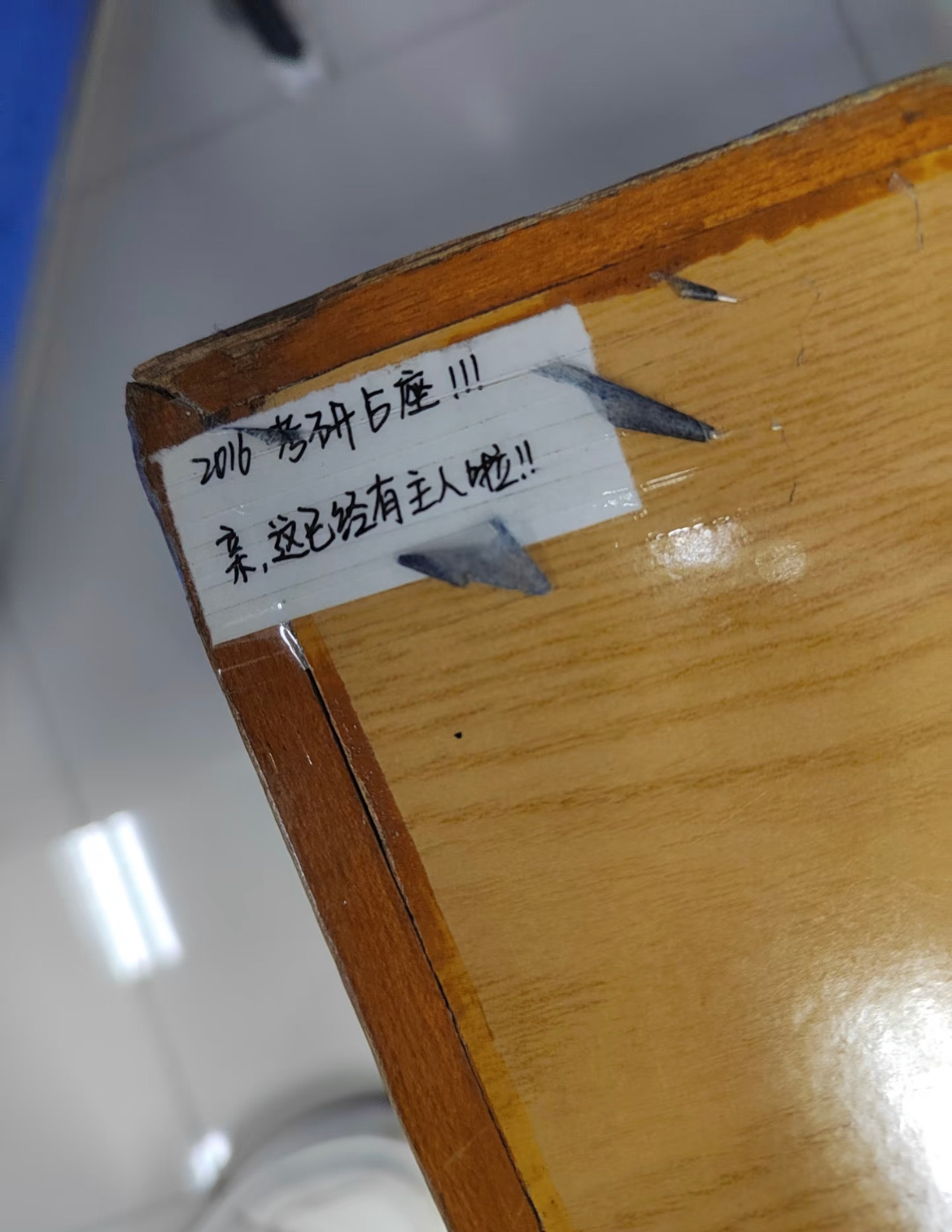26考研来图书馆发现凳子上的占座小纸条。