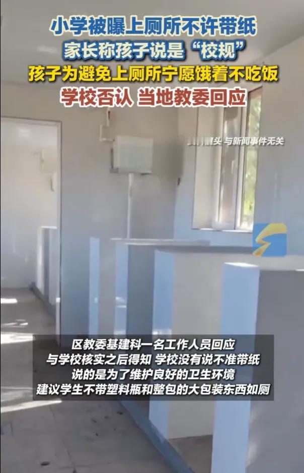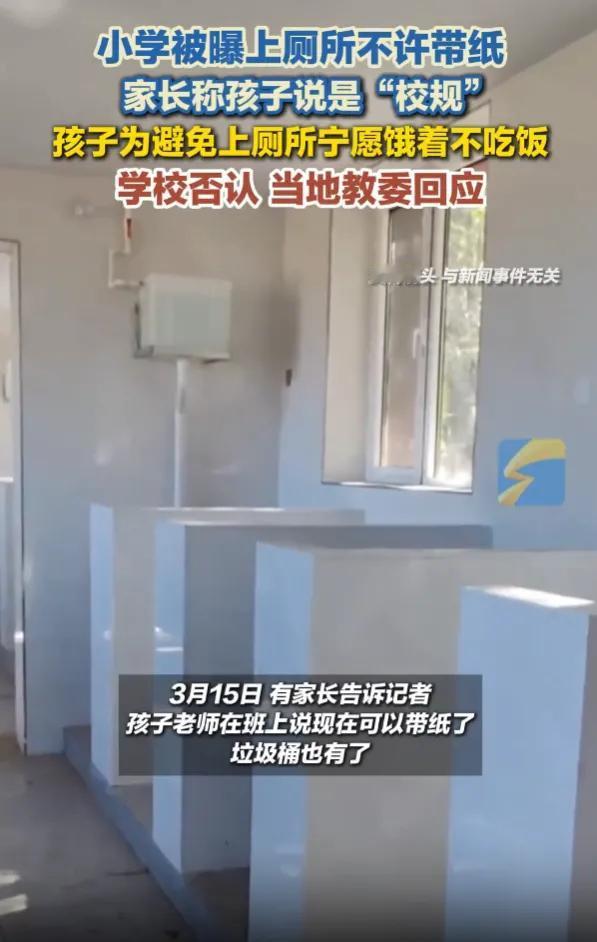 看了这个我只能说,连让人对外失去自由的监狱,都没这狠手段! 孩子饿肚子,就为躲厕所!这所小学的奇葩规定背后,是1300个孩子的无声抗议 晚上洗饭盒,发现一粒米都没少。妈妈问孩子为啥不吃饭,孩子憋出一句:“不敢吃,吃了要上厕所,上厕所不能带纸。” 重庆江津区珞璜实验小学,1300多个孩子最近被一条“校规”吓坏了。校长课间操当众宣布:为防止下水道堵塞,上厕所不许带纸! 孩子们的反应让人心疼!有的把纸藏袖子里偷偷用,像做贼一样。有的干脆中午不吃饭,饿着肚子硬扛。高年级女生更崩溃!生理期怎么办?难道一天不上厕所? 学校工作人员矢口否认!从来没下过这种规定。教委那边踢皮球,最后说是家长误解,学校只是建议不带塑料瓶和大包装东西。 好吧,如果这么解释,那就是一千多个孩子在集体撒谎咯?倒也可以申请个吉尼斯世界纪录了。可孩子们用行动说了真话!他们真的不敢带、不敢上、不敢吃。 事情闹大了,3月15日老师才通知“可以带纸了”,厕所也加了垃圾桶。3月17日教委发通报,称网传情况不属实,只是文明用厕提醒。 网友不买账!怕堵下水道就不让带纸,那怕迟到是不是不让上学? 懒于管理就是懒政!下水道堵了可以通,可以加垃圾桶,可以教孩子文明如厕。但让孩子饿肚子、憋出病、留下心理阴影,这种罪过,不怕遭报应? 教育该有人文的温度,不该被冰冷的“怕麻烦”思维冻住。学校是育人地方,不是流水线车间。连上厕所带纸这种基本需求都要限制,还谈什么尊重孩子? 规定改了,垃圾桶加了。可那些饿过的肚子、藏过纸的袖子、害怕上厕所的眼神,真的能一笔勾销吗?