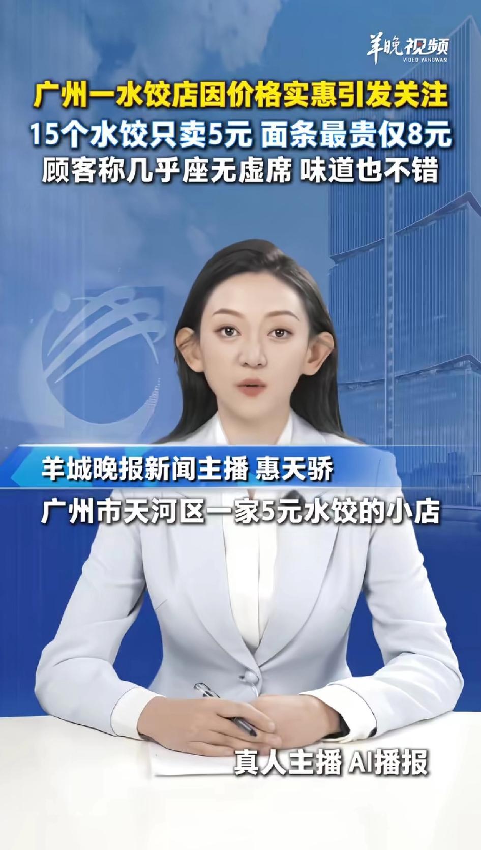 广州一水饺店因价格便宜引发关注,15个水饺只卖5元,面条最贵的仅8元。 广州天河区有家水饺店火了!它门头上写着“让物价回归90年代”,这是一家有情怀的店。菜单价格更是让人惊掉下巴。 15个水饺只卖5元,青菜面(粉)4元,雪菜肉丝面(粉)5元,最贵的面也才8元,有网友说把菜单全点一遍都花不到100元。老板还在菜单上注明“利润低”,人均消费才8元。 记者去探访时,午饭时间店里几乎满座。价格牌上写的也很清楚,下方一排红色字母写的也非常实在,你工资那么低,我利润这么低,你天天来我这吃饭,我俩都能活的好好的。 老板这几排字真是写到普通人的心坎上了。广州标准的一线城市,一顿午餐这样的价格确实非常实惠,这样的价格对于刚参加工作的小年轻真是太包容了。 附近商户证实价格属实,客人也评价水饺个头正常、味道不错。这么实惠的店,生意不火爆才怪呢,希望这样的良心小店越来越多!
