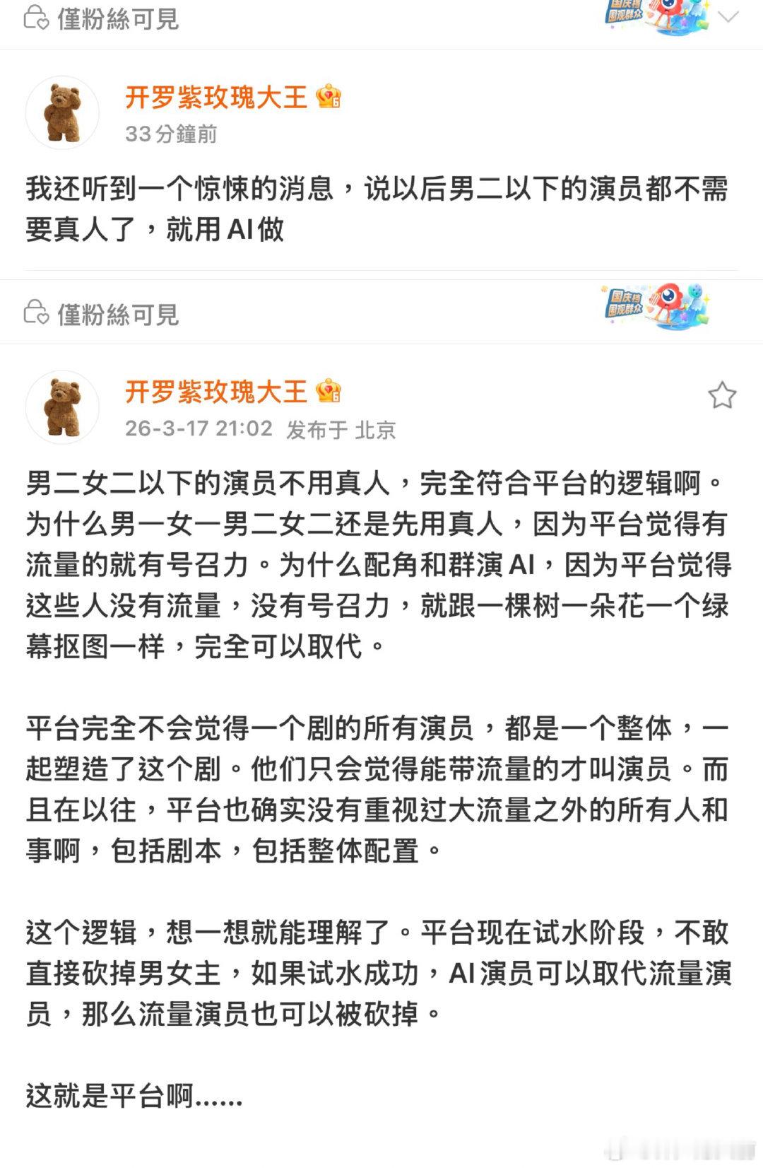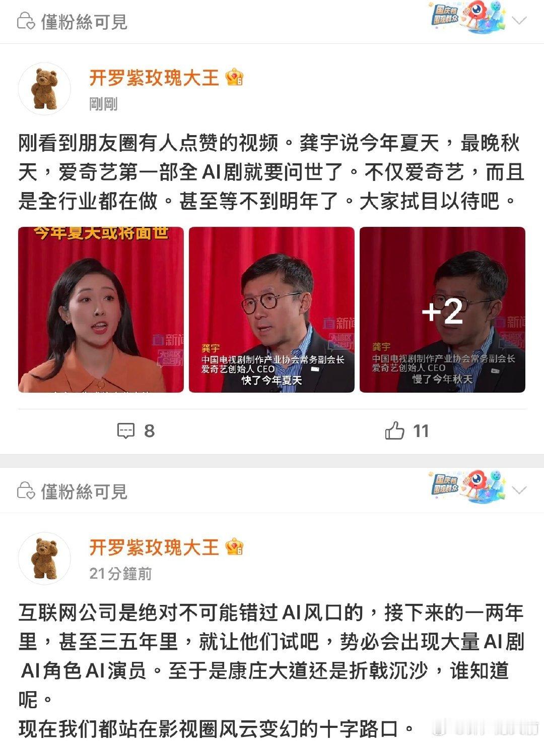 其实我更想看AI能否倒逼演员、影视行业进步,如果咱做剧还停留在不需要内容男帅女美就行、不需要观众全自动瀑就行的阶段,那被AI取代也是早晚的事