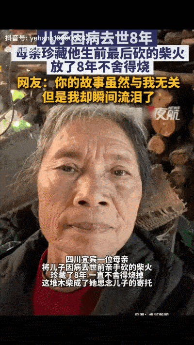 “看哭了!”四川宜宾, 一老人家里堆着8年前儿子为她砍的柴,她一直舍不得烧,原因很简单,那是儿子生前为她最后一次砍的柴!了解这位母亲的经历后,网友们更是破防了,纷纷留言暖心安慰。 网友:“你的故事虽与我无关,但是我瞬间流泪了!” 这位老人叫王素清,今年78岁,是宜宾翠屏区农村的独居老人。她的儿子李军走了8年,今年清明刚过,她又像往年一样,搬个小板凳坐在院坝墙角,盯着那堆码得整整齐齐的青冈柴发呆。那柴堆不算高,也就半人高,码得规规矩矩,表面的柴枝被风吹日晒得泛着浅灰,却一根没少,一根没烧。 宜宾的三月,春风已经吹软了泥土,后山的草木都发了新芽,可王婆婆的柴堆还停留在8年前。她每天早上起床,第一件事就是走到柴堆旁,用粗糙的袖口轻轻擦一擦柴枝上的浮灰,再伸手摸一摸柴捆的边角,像是在确认什么。有时候坐久了,她会对着柴堆念叨几句,声音轻得只有自己能听见,无非是“军军,你砍的柴还好好的”“妈没舍得烧”。 没人会想到,这堆看似普通的柴,藏着李军留给母亲的最后一份牵挂。8年前的冬天,宜宾的湿冷钻骨头,李军从外地打工回村,一进门就看到家里的柴堆空了,母亲正缩着脖子往灶里添湿柴,呛得直咳嗽。他二话没说,拿起柴刀就往后山跑。那时候李军刚38岁,在工地做瓦工,常年劳累,咳嗽的毛病已经缠了大半年,可他硬是顶着寒风,在山上砍了整整一下午青冈柴。 青冈柴是宜宾农村最耐烧的柴,却也最难砍,枝桠多,还扎手。李军回来的时候,手上磨出了血泡,袖口被柴枝划开了口子,额头上的汗混着雪水往下淌。他把两大捆柴往院坝一放,喘着气跟母亲说:“妈,这柴够你烧到明年开春,以后我每年回来都给你砍。”王婆婆当时还嗔他,说在外打工够累了,还瞎折腾,却悄悄把他手上的血泡擦了药膏,煮了碗红糖鸡蛋。 谁也没想到,那是母子俩最后一次见面。李军在家只待了三天,就匆匆赶回工地。没过半个月,工地传来消息,他在脚手架上摔了下来,没抢救过来。消息传到村里,王婆婆当场就晕了过去,醒来后哭了三天三夜,连饭都吃不下。等情绪稍微平复,她看着院坝里那堆青冈柴,突然就舍不得动了。 不是柴烧不着了,也不是冬天不冷,是这柴上沾着儿子的温度,是儿子最后一次为她做的事。邻居们看她独居,冬天冷得厉害,不止一次来劝:“王婆婆,柴放久了会受潮,烧起来烟大还不顶用,你烧几根,我再给你砍新的。”可王婆婆每次都摇摇头,把柴堆护得紧紧的:“这是军军给我砍的,最后一次了,我舍不得。” 她冬天宁愿把身上的旧棉袄裹了一层又一层,把烤火的炭盆烧得小小的,也绝不碰那堆青冈柴一根。有时候夜里冷得睡不着,她就坐在柴堆旁,靠着柴枝取暖,像是靠着儿子的肩膀。8年下来,柴堆没少一根,王婆婆的头发却白了大半,腿脚也不如从前利索,可守着柴堆的习惯,却从没改。 这段故事被发到网上后,网友的评论区瞬间被暖心的留言填满。除了那句“你的故事虽与我无关,但是我瞬间流泪了”,还有网友说“这哪里是柴,是儿子留在世上的最后一点念想”“父母把子女的每一份心意,都当成宝贝一样珍藏”,也有在外打拼的年轻人留言:“我也好久没给爸妈砍过柴了,明天就回家看看。” 其实在宜宾的农村,像王婆婆这样藏着子女心意的老人不在少数。近年来宜宾推进乡村振兴,不少年轻人外出务工,留守老人的数量依旧不少。他们一辈子没读过多少书,不会说华丽的情话,却会把子女做的每一件小事记在心里,把子女给的每一样东西当成珍宝。子女给的一根柴、一碗饭、一件衣服,在他们眼里,都比金山银山还珍贵。 这堆8年没烧的青冈柴,从来不是普通的柴火。它是李军对母亲的孝心,是王婆婆对儿子的思念,是亲情最朴素的模样。我们总说亲情是轰轰烈烈的陪伴,可更多时候,亲情藏在这些细碎的瞬间里:是儿子砍的柴,是母亲守的柴,是跨越岁月的牵挂,是刻在骨子里的爱。 王婆婆守着的不是柴,是和儿子相处的最后时光,是儿子从未走远的念想。这份沉甸甸的亲情,没有华丽的辞藻修饰,却比任何话语都动人。它让我们明白,亲情从来不需要惊天动地的表达,藏在日常里的每一份心意,都是最珍贵的宝藏。 各位读者你们怎么看?欢迎在评论区讨论。