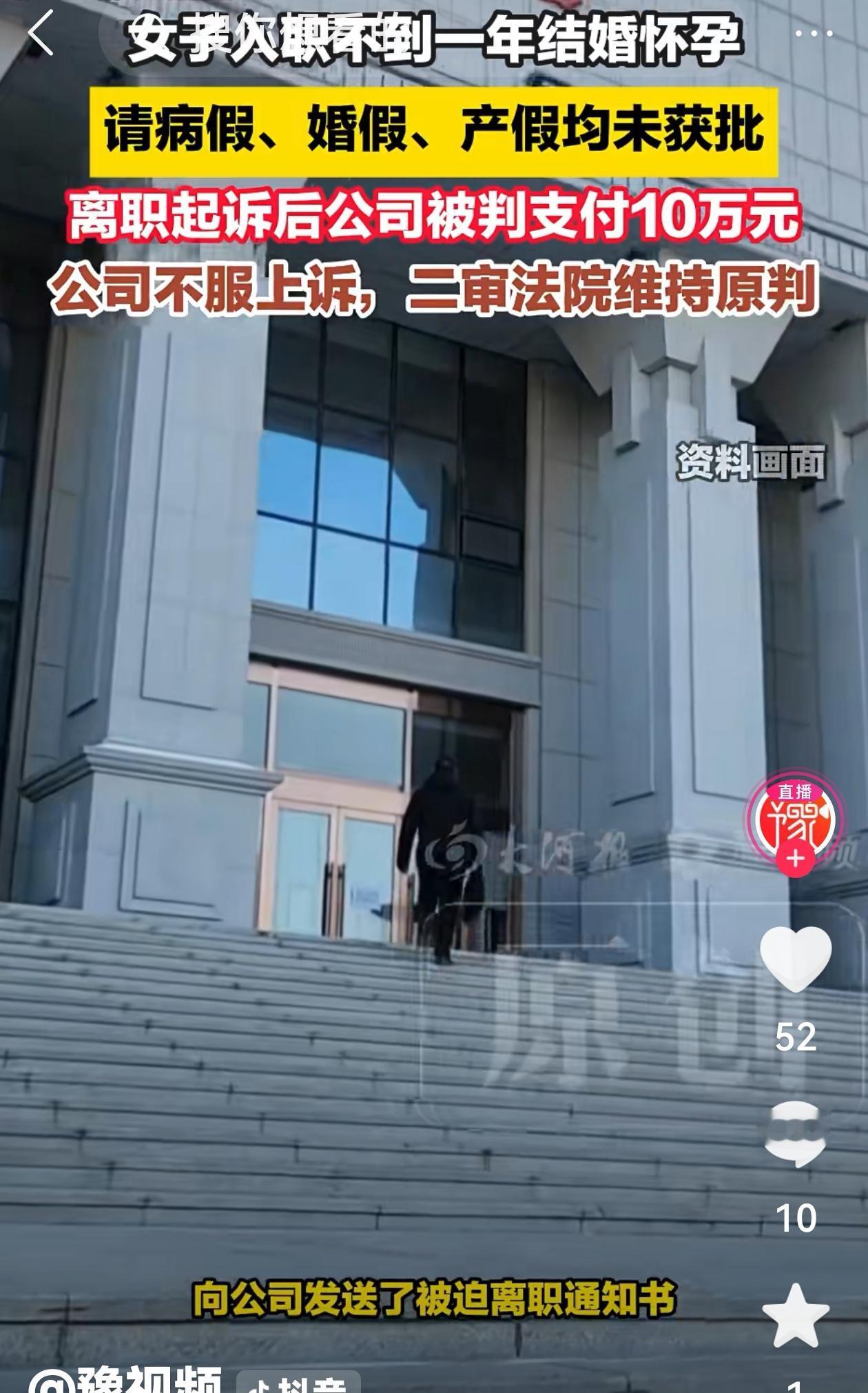 陕西西安,女子以15000元月薪进入一家公司 月薪一万五的工作,入职七个月就结婚,没多久又怀孕了。接下来的操作,让公司和法院都见识了什么叫“依法维权”。 张女士2023年2月进了这家公司,在西安做调试工程师,工资不错。同年9月,她登记结婚。12月,去医院检查,发现是“先兆性流产”,医生让她休息两周保胎。 从这时开始,她就向公司请假。先是请了22天病假,之后又申请5天婚假,再后来因为怀孕,申请了158天的产假。但这些假,公司一个都没批准。 公司不批,张女士也就没去上班。从2023年12月到2024年8月,差不多9个月,她没上班,公司也没给她发工资。 看似相安无事,其实她在等一个时机。2024年3月,她生下了孩子。就在产假期的最后一天,她给公司发了一封邮件,标题是《被迫离职通知书》。 她说,公司拒不支付各种假期工资,已经违法了,所以她被迫离职。接着,她就去申请了劳动仲裁,要求公司赔钱,算下来有16万多。 仲裁结果,公司要赔7.6万。两边都不服,公司觉得一分不该赔,张女士觉得赔少了,于是都告到了法院。 法院怎么判的?驳回了公司的诉求。认为张女士请病假有医院证明,婚假是法定权利,产假更是国家规定必须给的。公司以“没批准”为由不发工资,站不住脚。 最后判公司支付张女士病假、婚假、产假工资,再加上一笔经济补偿金,总共10.1万元。公司上诉,二审维持原判。 有网友就觉得,张女士是维权成功了,但这样会让公司以后更不敢招已婚未育的女性,等于把其他女性的路给堵了。也有网友认为,企业招个女员工,没干多久就怀孕休假,还要赔十多万,以后谁还愿意招女工? 但法律就是这么规定的。女职工的婚假、产假是法定权利,受特殊保护。只要她提交了真实的医院证明,公司不批假、不发工资,就是理亏。 这个案子也给所有人都提了个醒。对员工来说,要懂得用法律保护自己,像张女士那样卡在产假结束点维权,就很聪明。对公司来说,规矩要懂,该给的权利得给,硬扛着不批假,最后吃亏的还是自己。 情、理、法有时候会打架,但到了法院,最后看的还是法条。