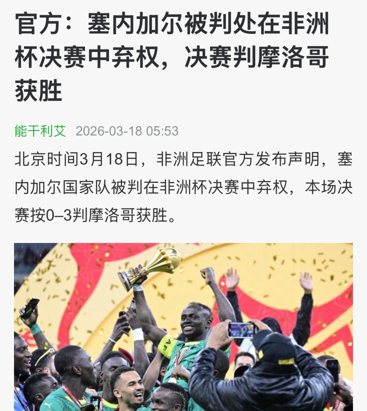 还能这么剥夺冠军的???看文章详情,这是摩洛哥犯错罚了10多w美金,塞内加尔犯错剥夺冠军炸裂呀!!