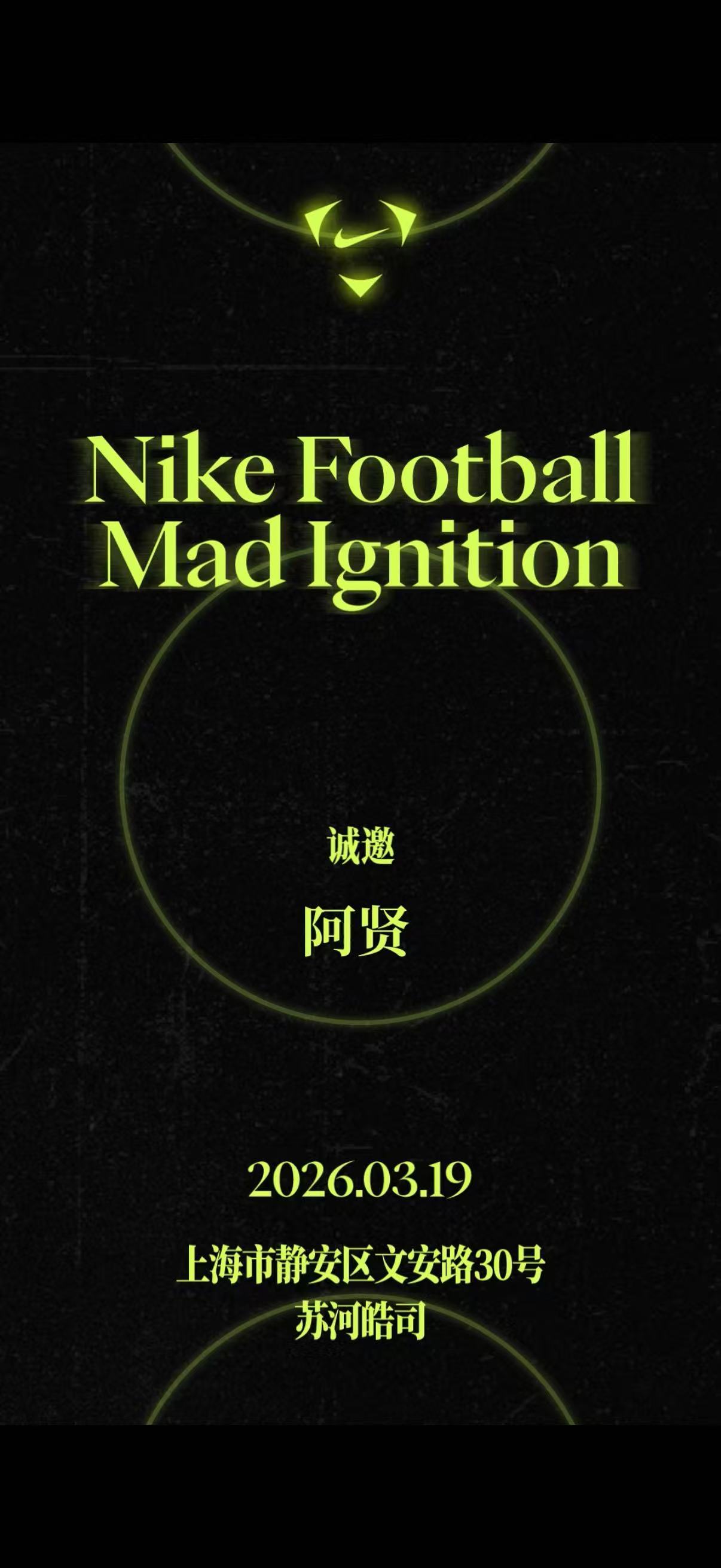 上海足球周末(世界杯球衣发布)耐克:📅 2026 年 3 月 20 日🗺️ 上海市静安区文安路 30 号 SUHE HAUS 1F/5F⏰ 15:00 - 22:00(晚上 9 点停止入场)阿迪达斯:📅 2026 年 3 月 21 -22日🗺️ 上海市黄浦区吉安路太仓路交叉口新天地喇格纳小学⏰ 12:30 - 21:00贤聊球衣世界杯