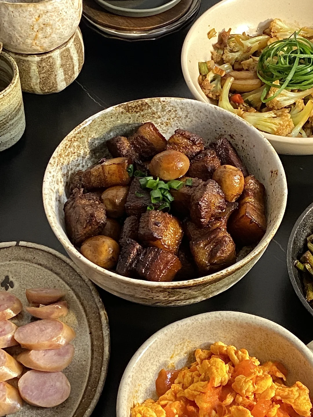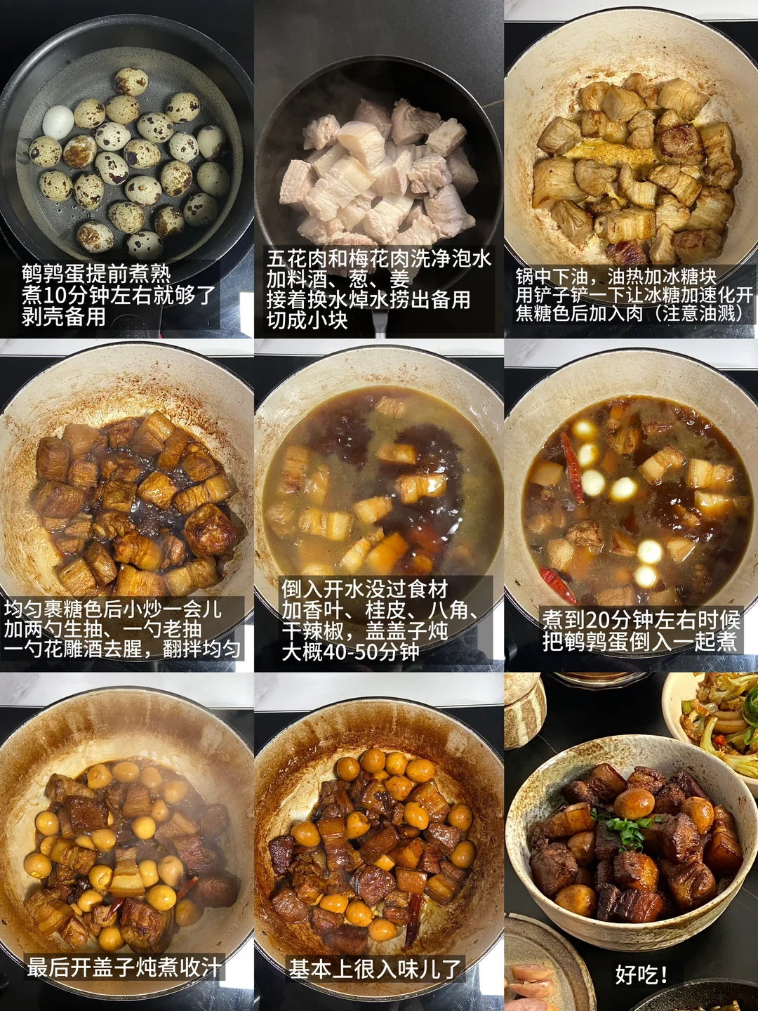 五花肉/梅花肉600g|鹌鹑蛋|葱|姜|香叶|桂皮|八角|干辣椒|冰糖