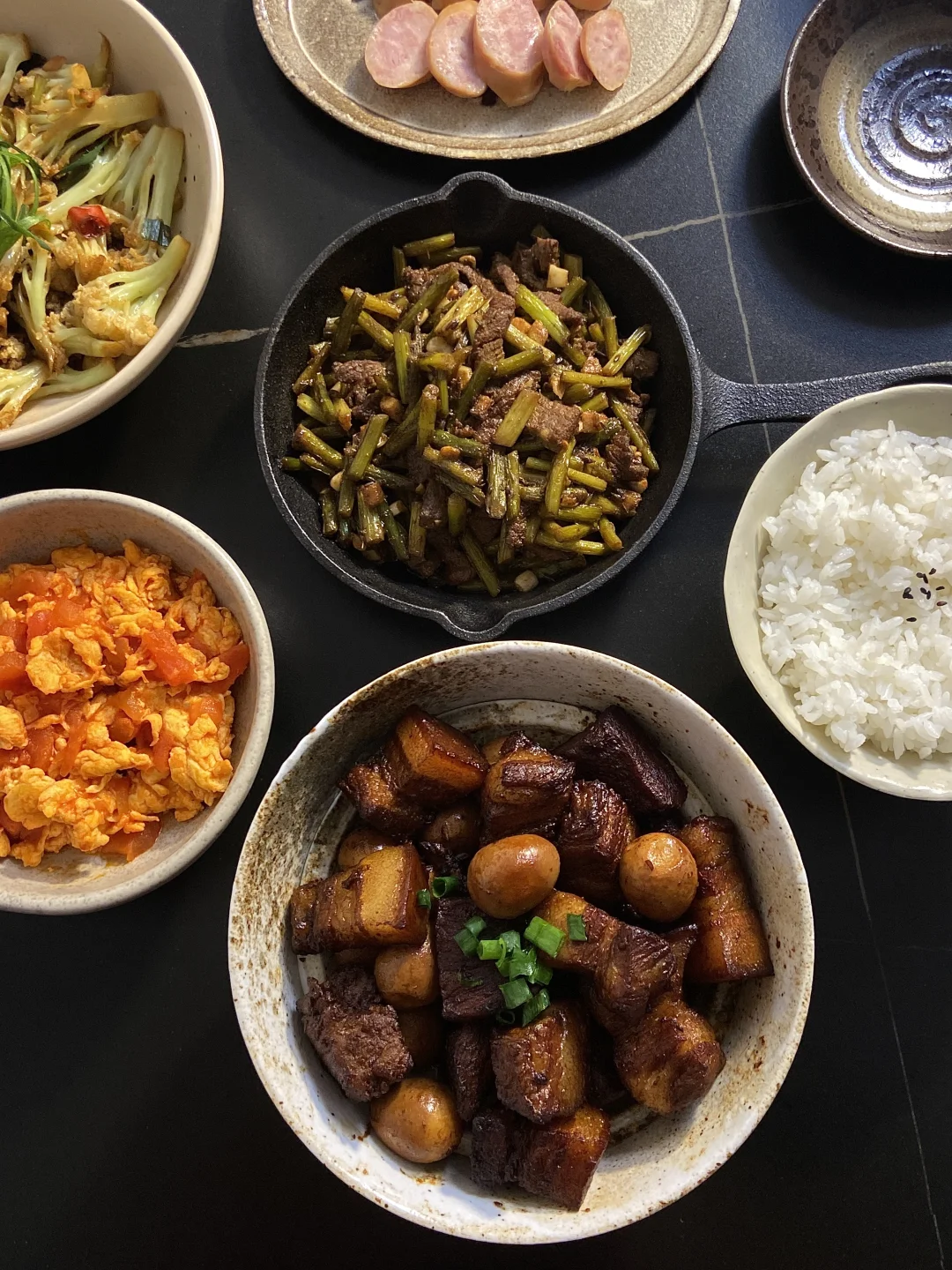 今天这一顿我主要做肉菜!下班回家有点晚了想着又能吃丰盛点又不太费事儿,所幸看了看家附近的七鲜小厨,挑几个爱吃的素菜和家人一起吃,炖肉的功夫菜也到了!先准备下鹌鹑蛋红烧肉的食谱,这鹌鹑蛋炖入味儿了之后特别香!