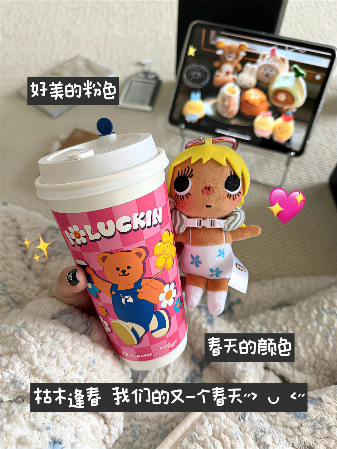 平静的幸福贯穿我的每分每秒(^.^) 今天喝了瑞子 粉粉嫩嫩的包装可好看 春天真的来了耶🐰👚 iPhone原相机调色: 曝光+10 鲜明度+35 高光+10 饱和度-5 色温-10 锐度+30