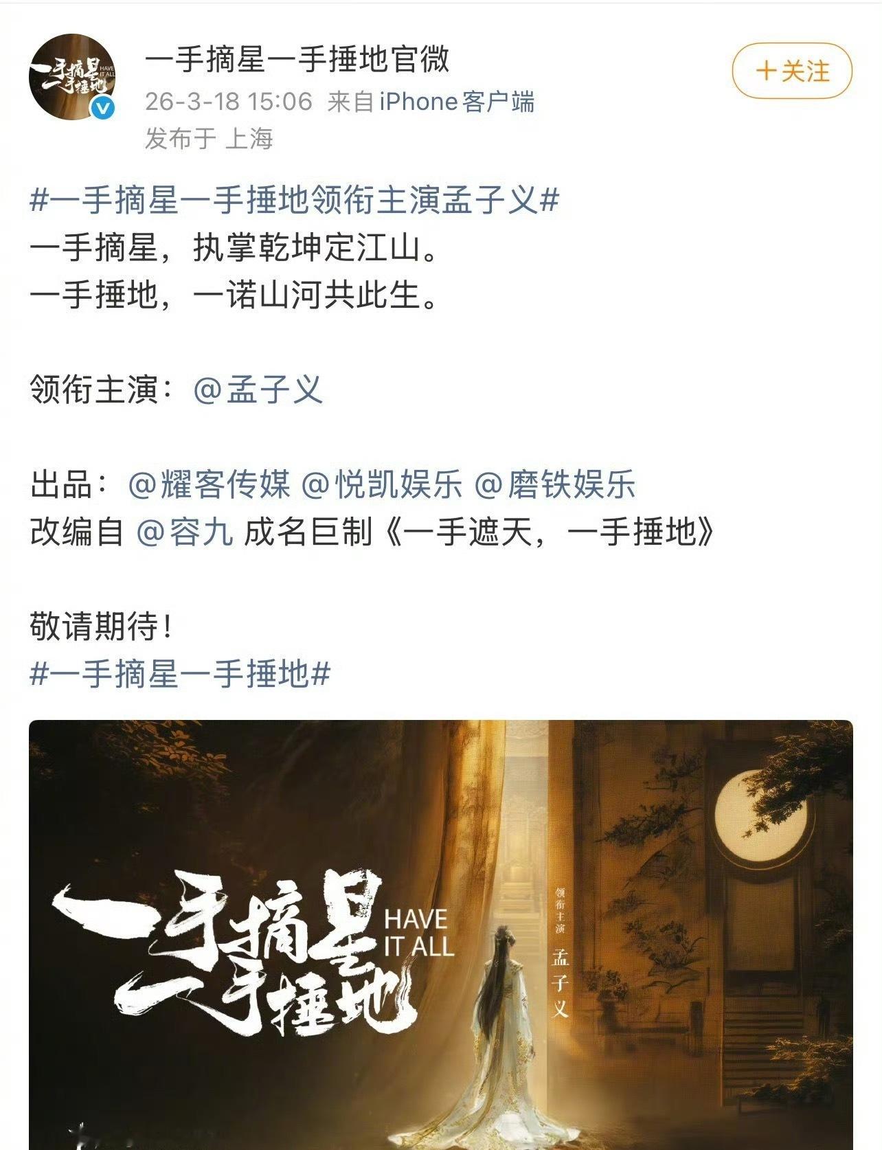 《一手摘星一手捶地》官宣领衔主演孟子义,孟姐又无缝进组了!