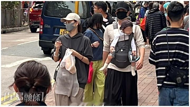 当日约下午4时,阿萧、翠如一家三口现身大埔街市,见到夫妻俩都戴上cap帽及口罩,全身包得很严实,并以一身街坊造型亮相、打扮朴素。翠如背着斜挎袋,阿萧则用背带背着“萧哈哈”,也没有工人姐姐跟随,全程亲力亲为。反而“萧哈哈”出巡没有戴上口罩,脸圆圆、脚长长,全程眼睛四处看,对街上所有事物都大感好奇,非常精灵可爱!