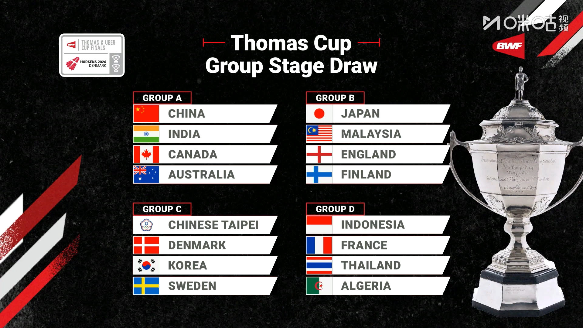 2026汤尤杯分组出炉2026年汤尤杯
