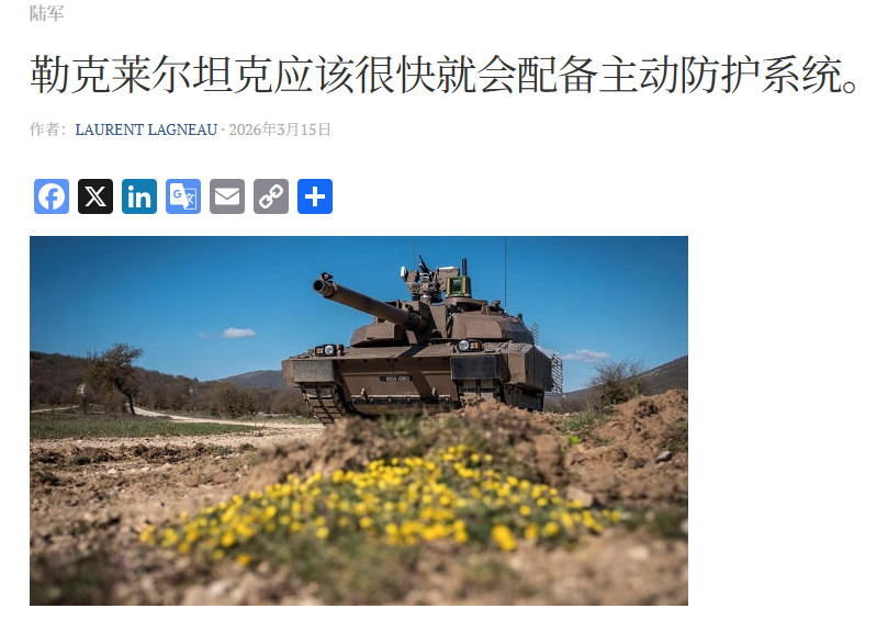 2022年法国陆军曾表示希望为“勒克莱尔”坦克以及“蝎子”(SCORPION)系列装甲车辆配备主动防护系统。从目前情况来看,这一目标似乎已经获得推进。