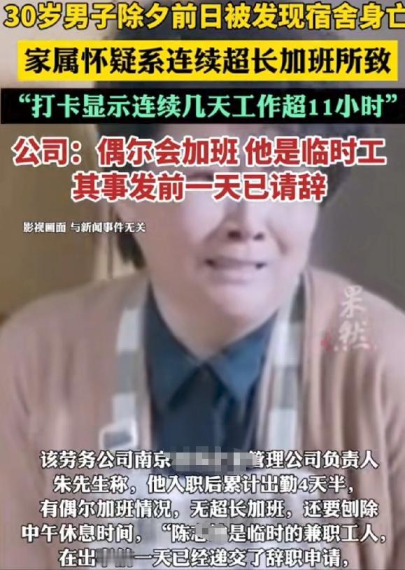江苏南京,30岁男子陈某外出打工,竟在宿舍突然没了气息。家属翻他手机才发现,他连续四天工作都超11小时,怀疑是加班累倒致死,找公司要赔偿。可公司却百般推诿,先说只赔2万,又改口说他是临聘人员,事发前一天已请辞。网友直呼:这说辞也太巧了! 宿舍里的那部手机,是这件事最冷静的证人。 2026年2月15日,农历腊月二十八,在南京一处物流仓库的员工宿舍内,30岁的陈某被发现已无生命体征。前一天晚上,室友曾听他说身体不太舒服,想早点休息,当时只当是太过劳累,并没有放在心上。 结果这一觉,再没醒来。 警方很快给出结论:排除他杀。不是刑事案件。 但家属拿着他留下的手机,翻出了另一份"案卷"。 考勤记录清晰可查:自2月6日入职以来,连续四天,每日工作时长均在11小时以上。2月11日那天,早上7点21分打卡进场,晚上7点07分才出来,中间没有停。将近12小时,一个来回。 一个30岁的年轻人,身体底子不差,就这么倒下了。 家属认定是过劳,找公司要说法。 公司的第一反应,是掏出2万块钱。 说是"人道主义补偿"。 这话说出来,家属当场就顶回去了。一条命,2万块打发,这是什么逻辑? 公司见这招没用,立刻换了一套台词。 先说陈某是"临聘人员",不是正式工,言下之意是保障体系跟他不挂钩。随后公布的详细信息显示,陈某在事发前一天,也就是2月14日,就已经主动提出辞职申请,相关离职手续全部办理完成,已正式离职。 意思很明白——他死的时候,已经不是我们的人了。 这个说法,乍一听像是堵死了家属的路。 但只要往细里想一秒钟,漏洞就全出来了。 都已经办理完离职手续,为何还继续住在公司宿舍里?为什么2月14日当晚还在跟室友说"不舒服",而不是收拾行李回家?为什么公司在除夕前后发的内部拜年通知,他的手机还在接收? 一个离了职的人,还穿着公司的工服,睡在公司的床上,躺在公司的地界里走了。 这叫什么?叫薛定谔的打工人。 既是离职状态,又是在职状态,全看公司当下需要哪个版本。 更关键的是,公司说他辞职了,但拿不出任何书面凭证。没有签字的辞职书,没有交接记录,没有任何一张纸。 劳动法在这件事上说得很死:你说他辞职,举证责任在你。你拿不出来,就等于他没辞。 没辞,就还是你的人。 还是你的人,死在你的宿舍,死前四天每天干超过11小时,这笔账,就得你来算。 按照工伤认定的标准框架,如果最终认定为工亡,赔偿数字不是2万,是接近120万。工亡补助金按全国统一标准约113万,加上丧葬费、精神抚慰金和其他杂项,总数落在118万上下。 从2万到118万,中间差了将近60倍。 这就是相关方极力打造并宣扬那套**离职相关说法**的真正用意。 不是因为这个说法有多可信,而是因为它一旦成立,那60倍的差距就可以合法消失。 这种操作在物流分拣行业不是第一次出现。 大量临时工、日结工、外包人员,平时被叫做"灵活用工",出了事就变成"跟公司没关系的人"。招工的时候不签合同,或者签了合同不给留底,考勤数据握在公司手里,工人自己能拿到的证据少得可怜。 陈某的家属算是幸运的,至少手机里还有打卡记录的痕迹。 但这份幸运,建立在一个30岁的人用命换来的基础上。 现在是2026年3月,这件事还没有最终结果。双方还在僵持,法律程序还在走。 但有一件事已经很清楚了:公司那套"辞职说",在物理现实面前站不住脚。宿舍、工服、拜年短信,这三样东西摆在那里,任何一个法官都会问同一个问题——一个离职的人,怎么还在这里? 陈某的父母,在湖北老家等了一个永远不会回来的儿子。 他们要的不复杂,就是一个说得通的答案,和一个说得过去的结果。 这两样东西,2万块钱买不到。 参考信息:齐鲁晚报.(2026-03-16).临时工除夕前宿舍身亡,家属疑因超长加班,公司称其已请辞愿配合工伤工亡认定。