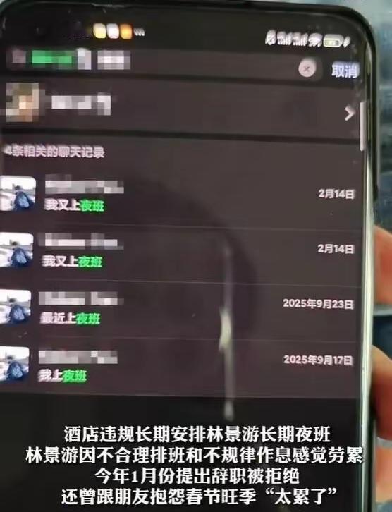 3月11日,福建林业职业技术学院大三学生,21岁的小林,因重症心肌炎抢救无效离世。 小林是去年9月,被学校安排到一家酒店前台,实习6个月。这是他第一次被安排工作,按三方协议,酒店不能安排学生上夜班。但是店方并未遵守,安排了小林上夜班。 小林的作息时间被打乱,身体向他敲响警钟,他感觉到很劳累。今年1月提出终止实习,被拒绝。他还对朋友抱怨,春节旺季太累了。 长期的熬夜,小林的身体吃不消了,3月1日,上班时心脏骤停晕倒了。送到医院抢救。最终回天无力,10天后离开了人世。 目前,警方已介入此次事件。 21岁正当青春年华,却这样殒落了。也提醒着人们,重视实习生的人文关怀,保护好实习生的健康权益不受到伤害。 实习生被安排多天夜班后晕倒离世实习生