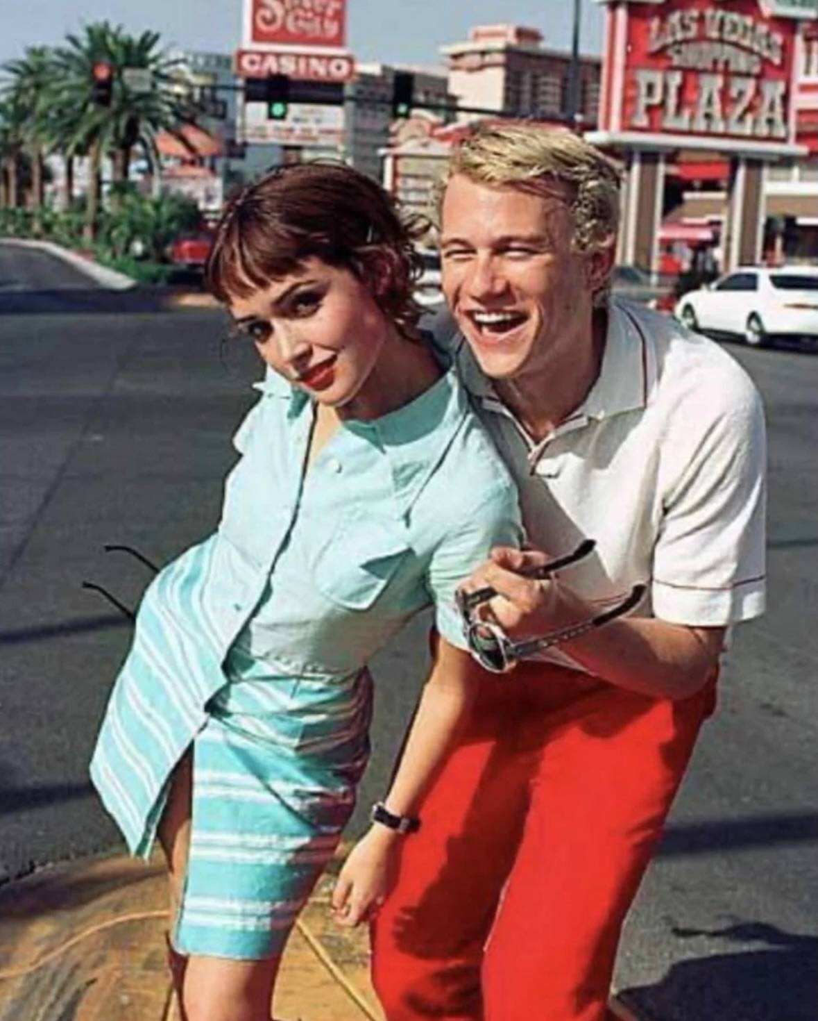 1999年,希斯·莱杰和萝丝·拜恩还只是两位即将崭露头角的澳大利亚年轻演员,正在拉斯维加斯宣传电影《双手》。这张照片便定格于那个时刻:一场为影片国际推广而拍摄的时尚又有点混乱的宣传照,捕捉到了两人在澳大利亚以外尚未广为人知时的模样。