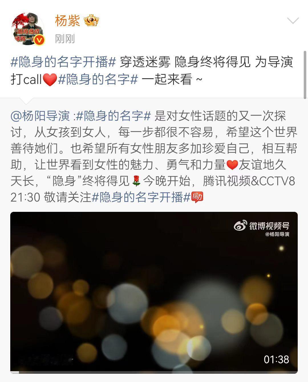 杨紫支持杨阳导演新作期待杨阳导演新作隐身的名字女性群像悬疑好剧,大家多多关