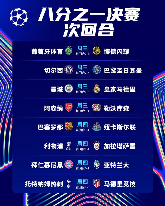 足球:2026欧冠联赛1/8决赛次回合第二比赛日结束,八强对阵出炉! 北京时间3
