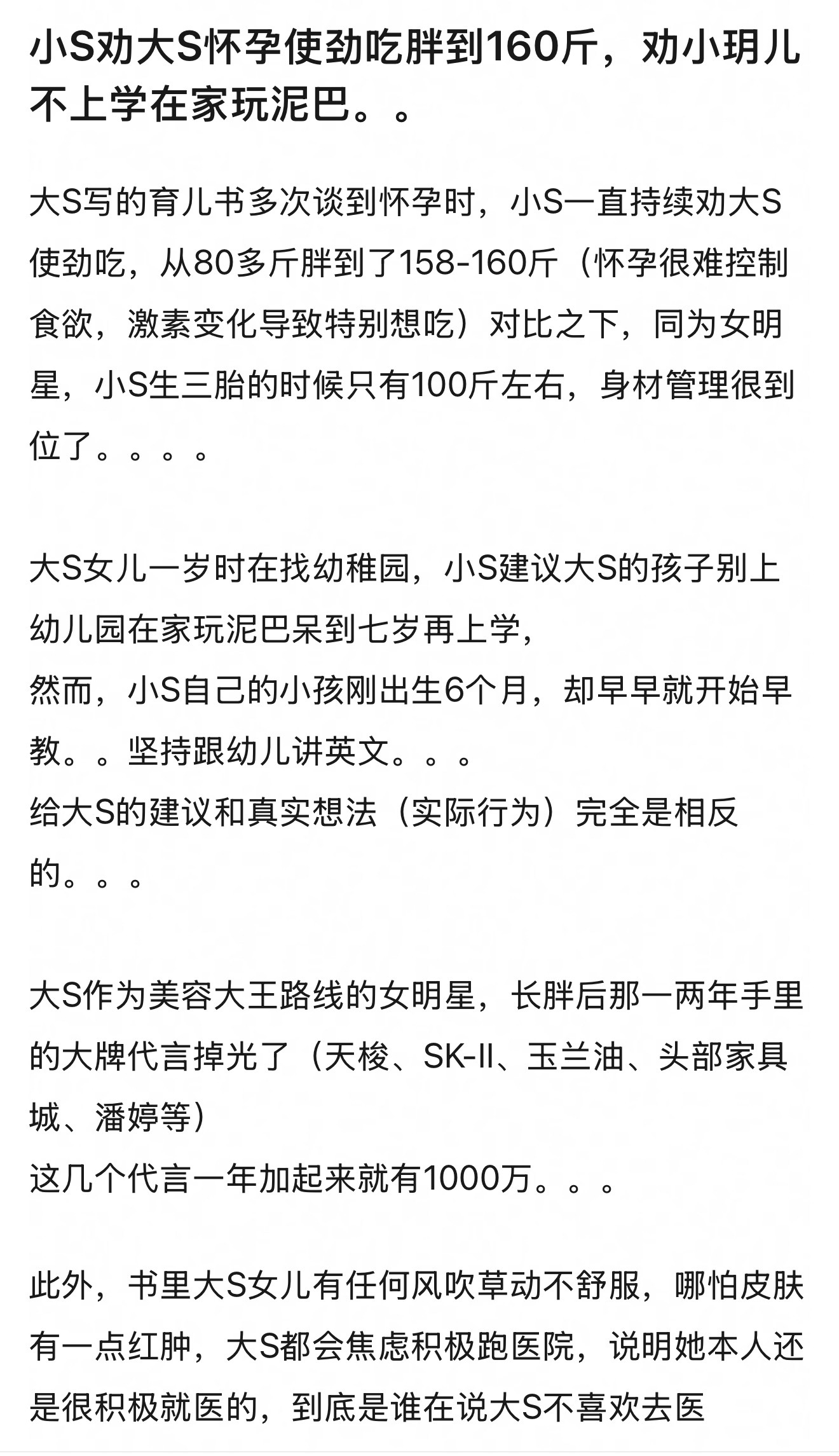 小S劝大S怀孕使劲吃胖到160斤,劝小玥儿不上学在家玩泥巴,结果她自己怀孕拼命控制体重…