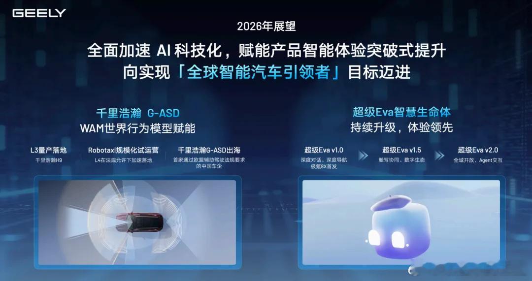 我特别希望提醒的是,作为大企业,吉利既要落实企业战略能力,又要强化创新活力,要让战略部署的速度继续提升。从目前看,中国具备行业发展代表性的企业无一不在抓落实、抓效率,回归一个吉利的含金量将在未来3-5年内释放,我希望在战略执行过程中加快这一进程。吉利大涨吉利汽车2025全年财报吉利发布舱驾融合关键成果