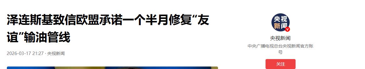 离匈牙利大选只剩不到一个月了,欧尔班正指望着靠断油危机翻盘。   就在这个节骨眼上,泽连斯基干了一件漂亮事。   3月17号,他正式致信欧盟领导人,承诺大约一个半月内修复那条被炸断的“友谊”输油管道,恢复向匈牙利、斯洛伐克送油。   这封信一出,欧尔班估计要气得拍桌子了。   要知道,1月27号“友谊”管道遇袭断油后,欧尔班可是把这事当成了竞选的“救命稻草”。   他到处宣扬,说这是乌克兰在搞“政治武器化”,说欧盟在“冷眼旁观”。   欧尔班的目的很明确,就是想把大选变成“战争与和平”的抉择。   他想利用民众对能源危机的恐慌,煽动反乌、反欧情绪,好让自己在民调落后的情况下逆风翻盘。   可是,泽连斯基这招“顺水推舟”,直接把欧尔班的计划给破坏了。   其实在3月5号,泽连斯基还放狠话,说不愿恢复输油,甚至威胁要用“自己的语言”跟欧尔班交涉。   怎么才过了十几天,态度就来了个180度大转弯?   这背后,可是欧盟和乌克兰联手打出的一套“组合拳”。   3月16号,欧盟委员会主席冯德莱恩和欧洲理事会主席科斯塔联名致信泽连斯基。   他们主动提出提供技术和资金援助,帮着恢复向匈牙利和斯洛伐克供油。   泽连斯基立马接过了这个台阶。   他指示乌国家石油天然气公司负责人跟欧盟驻乌大使对接,承诺在约一个半月内恢复布罗德泵站的技术能力。   他还顺带驳斥了“乌克兰故意断油”的说法。   这一手,玩得是真漂亮。   首先,泽连斯基给了欧盟面子,展现了建设性态度,巩固了乌欧同盟。   其次,他直接抽空了欧尔班的“悲情牌”和“外部威胁论”基础。   欧盟出钱出力,欧尔班就没法再骂布鲁塞尔“不管匈牙利死活”了。   最绝的是这个时间点。   泽连斯基承诺的“一个半月”修复期,恰好卡在新一届匈牙利政府上台执政的时间段。   也就是说,等油送到了,欧尔班大概率已经下台了。   这简直是“杀人诛心”啊。   泽连斯基通过释放“能源危机即将解除”的预期,安抚了匈牙利选民。   这在客观上,精准打击了欧尔班的选情,间接为匈牙利亲欧反对党蒂萨党扫清了障碍。   欧尔班蓄谋数月的选战策略,就这么在乌欧双方一封信件的联合操作下瞬间破产。   政治就是这么残酷。   能源不仅是经济命脉,更是高度敏感的政治选票筹码。   泽连斯基从强硬威胁到妥协承诺,绝不是立场软化,而是精确计算的政治投机。   在这场地缘政治博弈中,时机就是最致命的武器。   欧尔班想利用能源危机续命,结果却被泽连斯基和欧盟联手“反杀”。   接下来的匈牙利大选,欧尔班恐怕是凶多吉少了。
