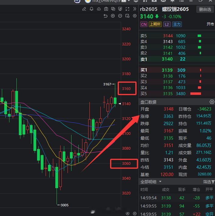 螺纹钢日线级别的这波上涨100点的空间到了,可以考虑出掉,等回调下来再找机会进。