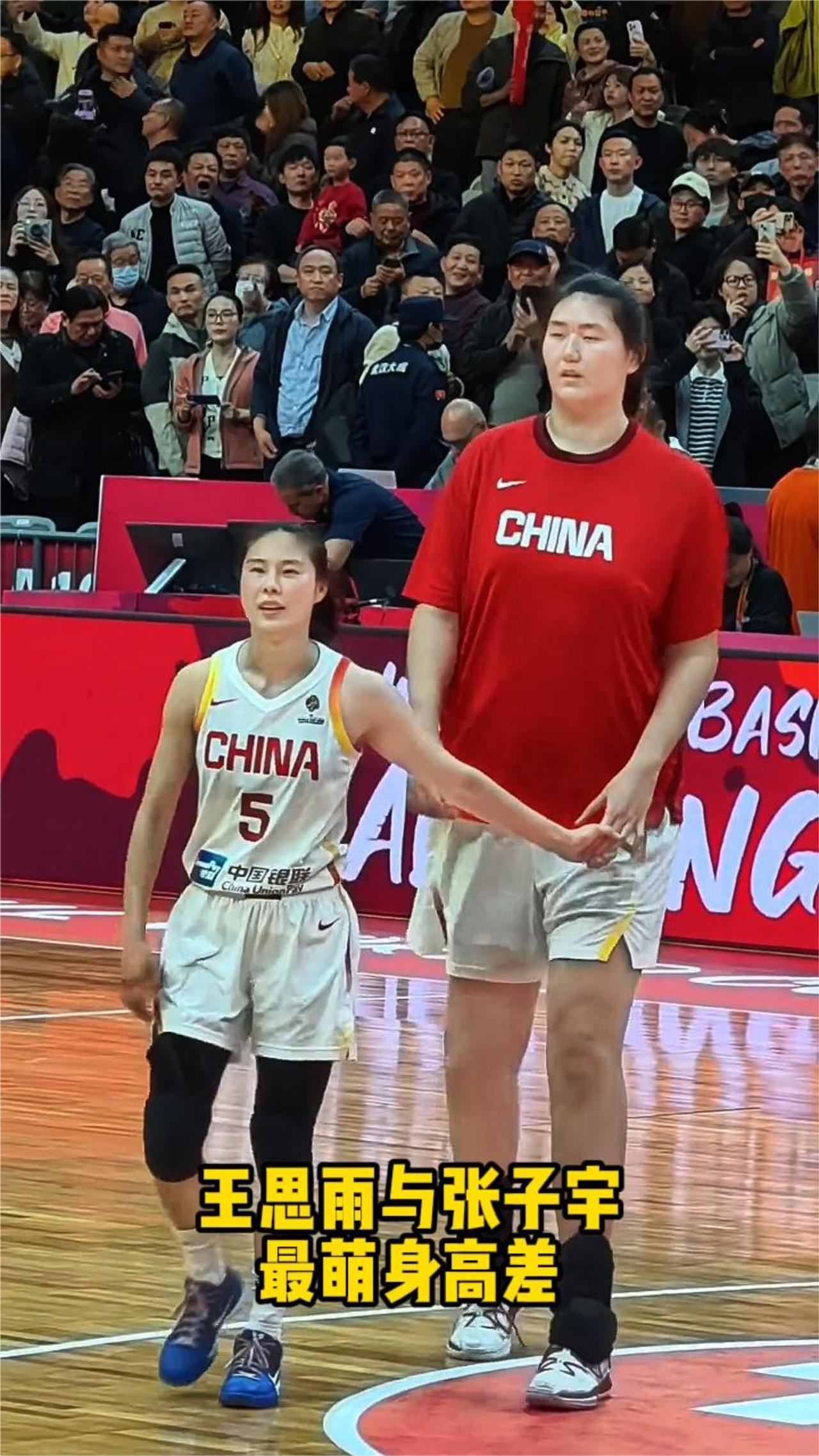 王思雨与张子宇最萌身高差。 两人形影不离,张子宇这身高太显眼了。王思雨在张子宇身边秒变小手办,张子宇都到天花板了。王思雨细心指导张子宇。