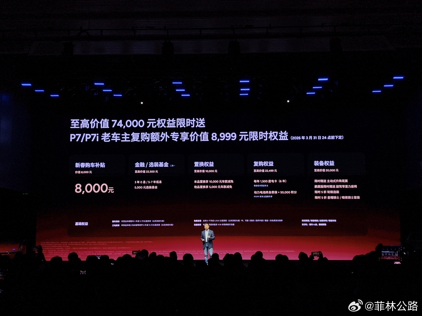 小鹏P7全新升级,702 Max版 20.38万元、820 Max版 22.38万元、750 四驱 Max版24.38万元、750 四驱鹏翼 Ultra版 30.18万元。在Max版基础上,加1.2万元即可升级为搭载2颗图灵AI芯片+第二代VLA的Ultra SE、加2万元可升级为搭载3颗图灵AI芯片+第二代VLA和VLM大模型的Ultra。即日起至2026年3月31日24点前下定小鹏P7,可享至高价值74,000元限时权益!小鹏P7这次太全面了小鹏P7黑白红新色20.38万起