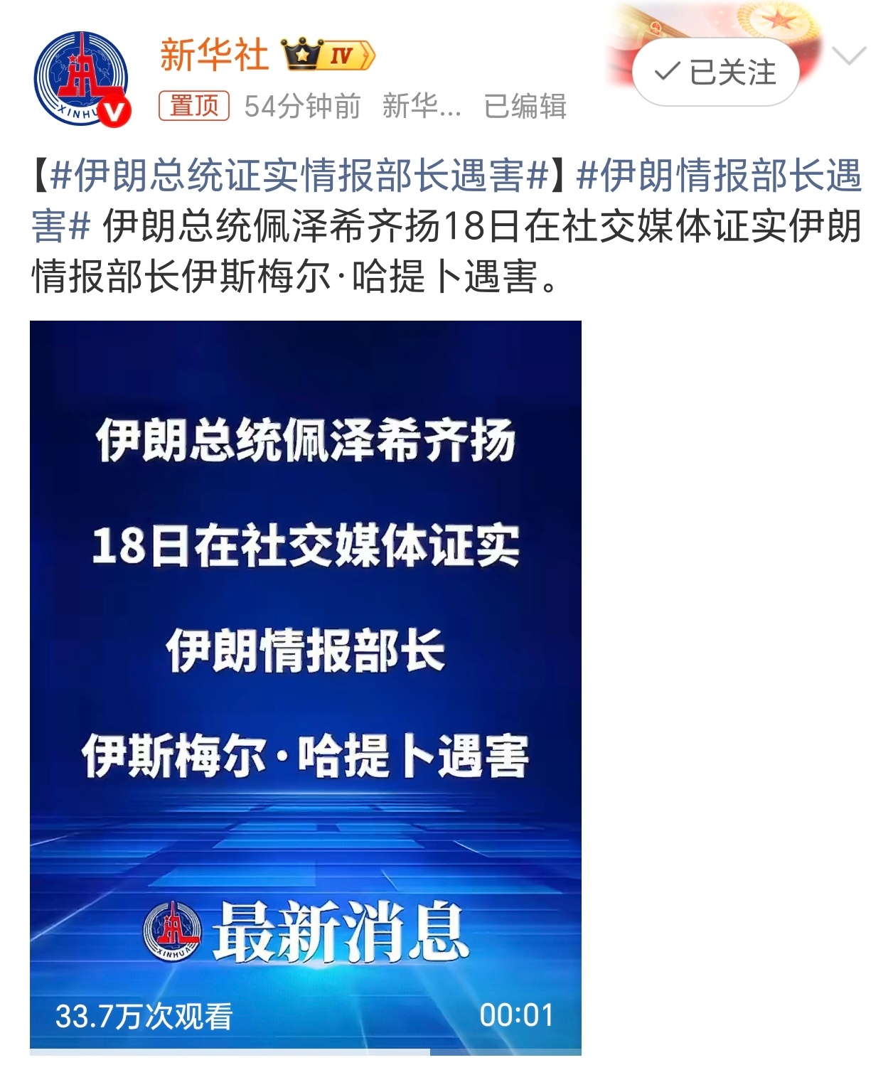 伊朗的天怕是踏了一半了吧多少重要人物都被斩首了所以伊朗的重要人物在隐藏方面到底是不会还是认为无需躲藏伊朗总统证实情报部长遇害伊朗情报部长遇害