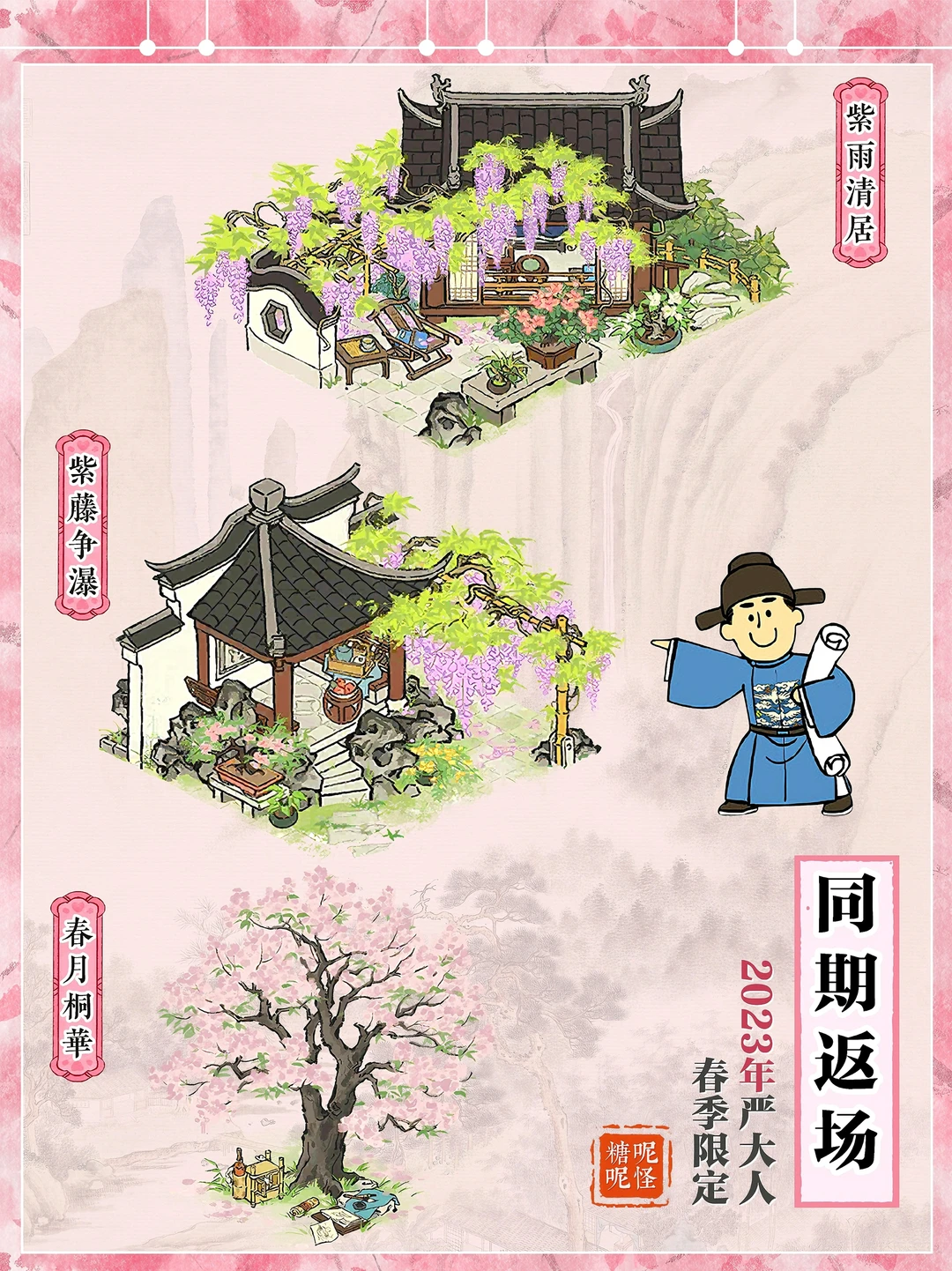 💚严大人春限上新,【苦楝花树】【悠然山居】【春园小径】 💛往期同步返场,【古柳迎春】【春日踏青】【桃林孤亭】【盥手观花】【玉兰知春】【绿园奇石】【花落秋千】【观鱼小憩】【紫雨清居】【紫藤争瀑】【春月桐华】【春光小筑】【落花墙外】【春山杜鹃】