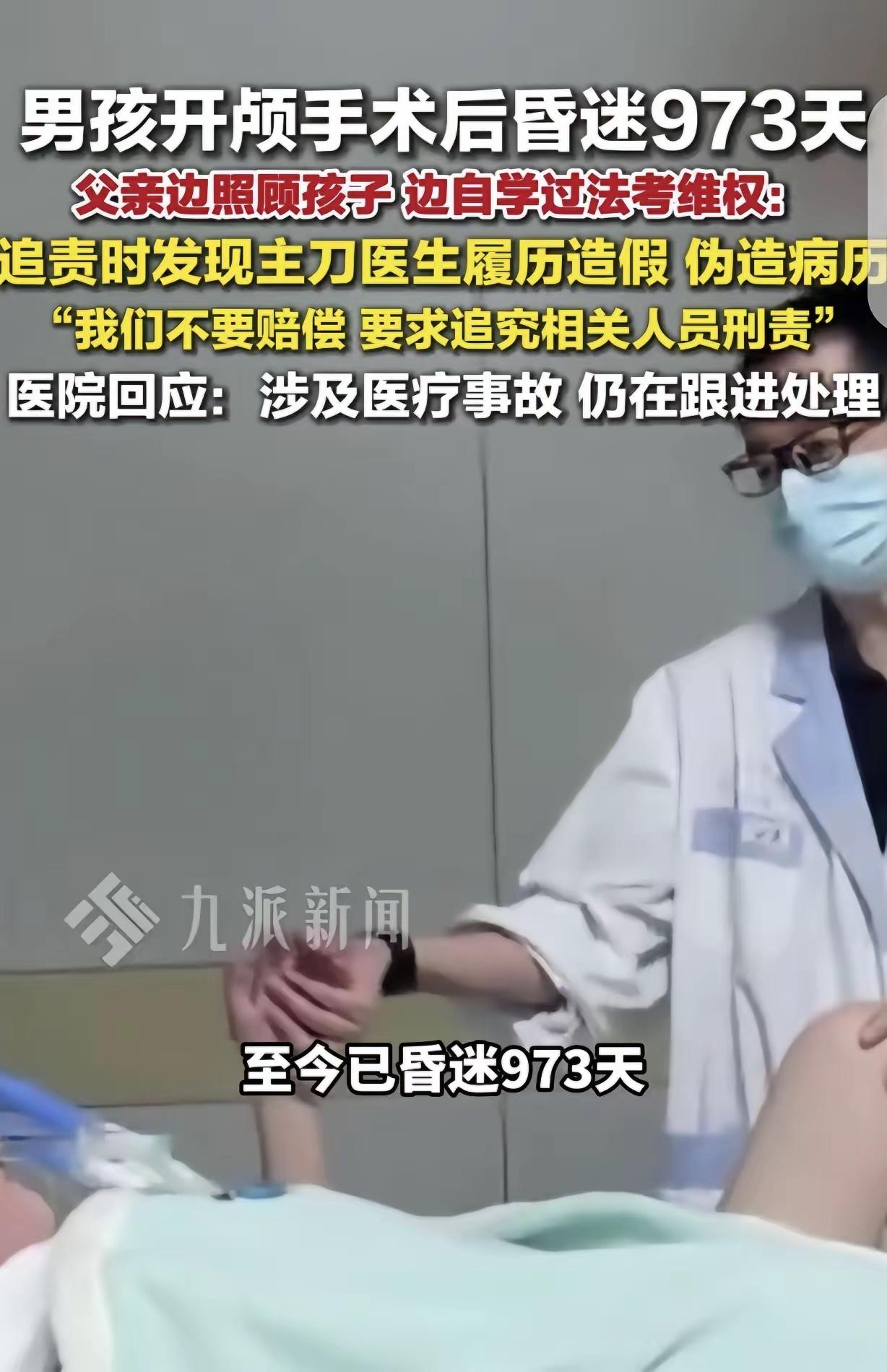 江苏无锡,一16岁男孩开颅手术后,昏迷973天,父亲追责时发现,主刀医生履历造假,还篡改病历,父亲怒了,23年没碰书本的他,一边照顾儿子,一边自学法律知识,终于通过了2025年法律职业资格考试,他要为儿子讨个公道,他不要赔偿,坚决追究主刀医生的刑事责任。 龚先生原本有着平凡而幸福的生活,儿子活泼可爱,一家人的日子虽不富裕却也温馨。儿子是全家的开心果,放学回家会扑到他怀里分享学校的趣事,周末会拉着他去公园打球,这样的日子,龚先生以为能一直延续下去。直到儿子突发脑部疾病,医生建议做开颅手术,他想都没想就同意了,只盼着手术能让儿子好起来,回到从前的生活。 谁也没料到,这场手术成了全家噩梦的开始。儿子进手术室后,龚先生在外面守了整整一天,出来时看到孩子浑身插满管子,陷入昏迷,医生说手术很成功,后续慢慢恢复就好。可日子一天天过去,儿子始终没醒,973天里,龚先生每天守在病床前,给儿子擦身、按摩、喂流食,重复着同样的动作,盼着能出现奇迹。他一遍遍问医生情况,得到的都是模糊的回复,直到他想调取病历追责,才发现了惊天秘密。 主刀医生的履历全是假的,根本没有对应的执业资质和手术经验,更离谱的是,病历被反复篡改,原本的手术记录、术前评估全被改写,试图掩盖医疗过失。龚先生拿着被涂改的病历,手都在抖,973天的煎熬,换来的竟是一场由无证医生主导的医疗事故,还有刻意的掩盖。他不是没想过放弃,可每次摸到儿子冰凉的手,看着儿子毫无反应的脸,就又咬牙撑了下来。 龚先生23年没碰过书本,连基础的文字都有些生疏,要自学法律谈何容易。2025年法律职业资格考试有多难,考过的人都清楚,客观题考八大核心科目,主观题全是案例分析和法律文书,还要结合最新的法律法规,通过率常年不足20%。他每天凌晨四点就起床,先给儿子翻身、换尿布,然后坐在病房的小桌子前看书,白天照顾儿子的间隙,就拿着手机查法条、看网课,晚上儿子睡了,再熬夜刷题,笔记记了一本又一本,写满了密密麻麻的标注。 病房里的护士都心疼他,劝他别这么拼,可他说,儿子还在躺着,他不能倒下,他要学会用法律保护儿子。他不懂什么是医疗事故罪,什么是伪证罪,就一点点查资料、问律师,把病历篡改的法律后果摸得透透的——为掩盖重大医疗过失导致患者严重损害,涉事医生可能构成医疗事故罪,最高判三年;故意篡改病历影响鉴定,还可能构成伪证罪,最高判七年。 龚先生不是没有拿到过赔偿方案,医院和涉事医生家属多次找他,提出高额赔偿,希望他能息事宁人。可他都拒绝了,他说,钱再多也换不回儿子的健康,换不回儿子的人生。他要的不是赔偿,是正义,是让造假的医生承担刑事责任,让他为自己的行为付出代价,更是要警示整个医疗行业,不能再有人漠视患者的生命,不能再用造假和篡改掩盖过失。 很多人不理解他,觉得他太固执,可只有龚先生自己知道,这份坚持背后,是父亲对儿子的责任。他通过法考,不是为了自己,是为了能亲自拿起法律武器,为儿子讨回公道,让那些漠视生命、践踏医疗诚信的人,受到应有的惩罚。 医疗行业是守护生命的最后一道防线,医生的履历真实、病历准确,是对患者最基本的负责。履历造假、篡改病历,不仅是违背医德,更是触犯法律,会给患者和家庭带来毁灭性的打击。龚先生的经历,也给所有人提了个醒,就医时要多留意医生的资质,保留好病历资料,一旦遇到问题,要勇敢拿起法律武器维护自己的权益。 父爱的力量,从来都能创造奇迹。龚先生用973天的坚守,用自学法律的坚持,为儿子撑起了一片天。他的故事,让我们看到了平凡父亲的伟大,也让我们对医疗诚信有了更深的思考。 各位读者你们怎么看?欢迎在评论区讨论。