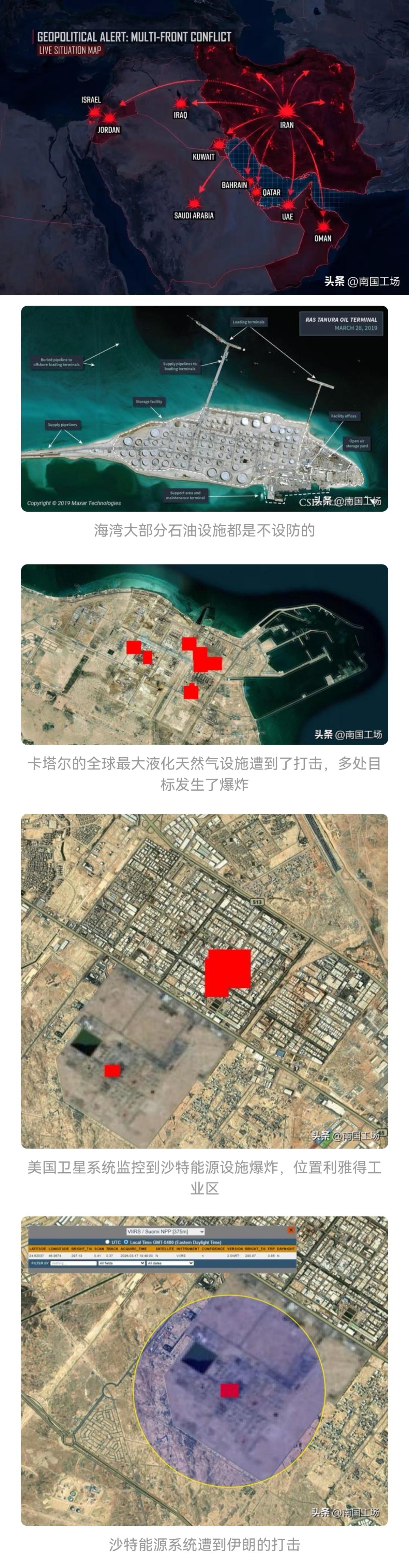 特朗普知道以色列袭击伊朗南帕斯气田的计划并支持,袭击发生不超过一个小时,伊朗报复袭击了,卡塔尔拉斯拉全球最大的液化天然气生产地,击中并大火,卡塔尔天然气制液分离装置造价极其昂贵,每台装置的成本约为10亿美元,制造周期为3-4年。卡塔尔天然气公司共有8台分离装置。沙特利亚德油气联合炼油厂美方专属区域,击中并大火,摧毁了给美军提供战机燃料补给的储备。阿联酋阿布扎比哈布尚天然气设施和巴卜油田被袭,天然气设施已暂停。特朗普表示不希望再次袭击伊朗能源设施,它怕“石油美元”,石油被伊朗灭了,就只剩不值钱的绿票子了。