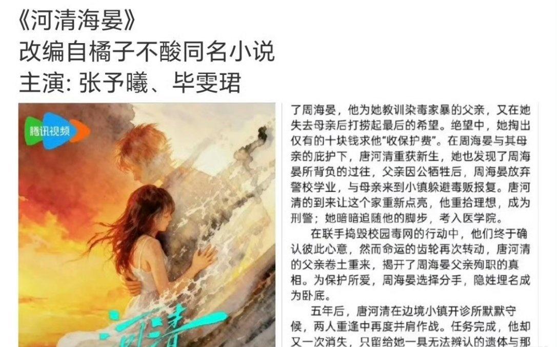 张予曦毕雯珺主演河清海晏 网传张予曦、毕雯珺主演新剧《河清海晏》来袭!缉毒警与女