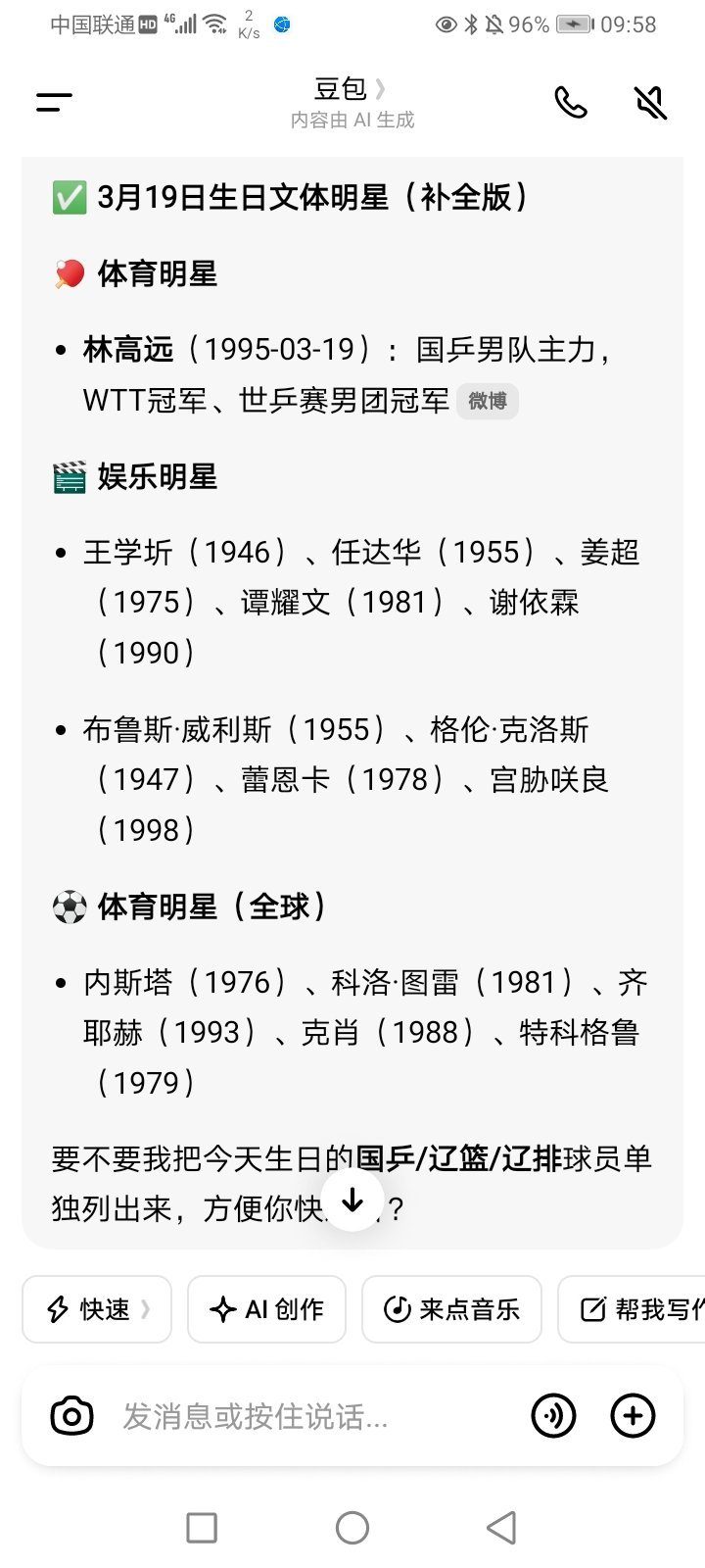 文体明星之前我只知道任达华 林高远和我同一天 林高远和我同一年同月同日 今天才知道王学圻老师/姜超老师(李大嘴)/谭耀文哥哥/谢依霖姐姐和我也是同一天生日 感谢百科