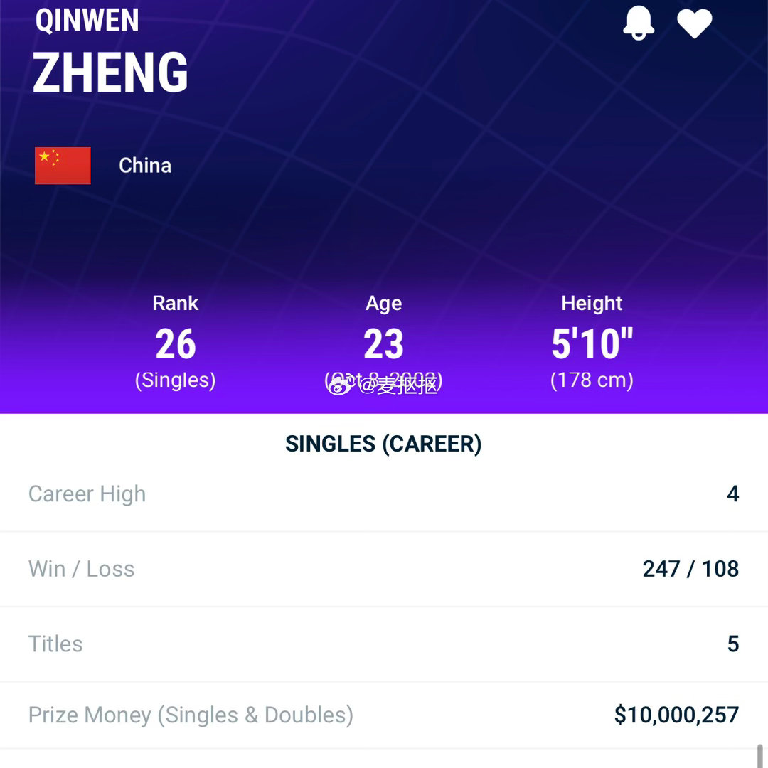 郑钦文生涯总奖金正式突破1000万美元!💰 生涯总奖金:10,000,257美元(约7100万人民币)中国网协旗下第三位千万美金俱乐部成员🇨🇳中国女网历史排名:第4位(李娜、谢淑薇、张帅)2024赛季:单赛季555.9万美元(中国网球单赛季奖金纪录)🔥2025赛季:约169万美元郑钦文生涯总奖金破千万美金wta郑钦文