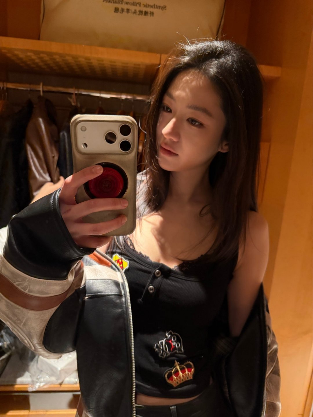 刘亦菲你要注意,背面的镜子给你反光了。