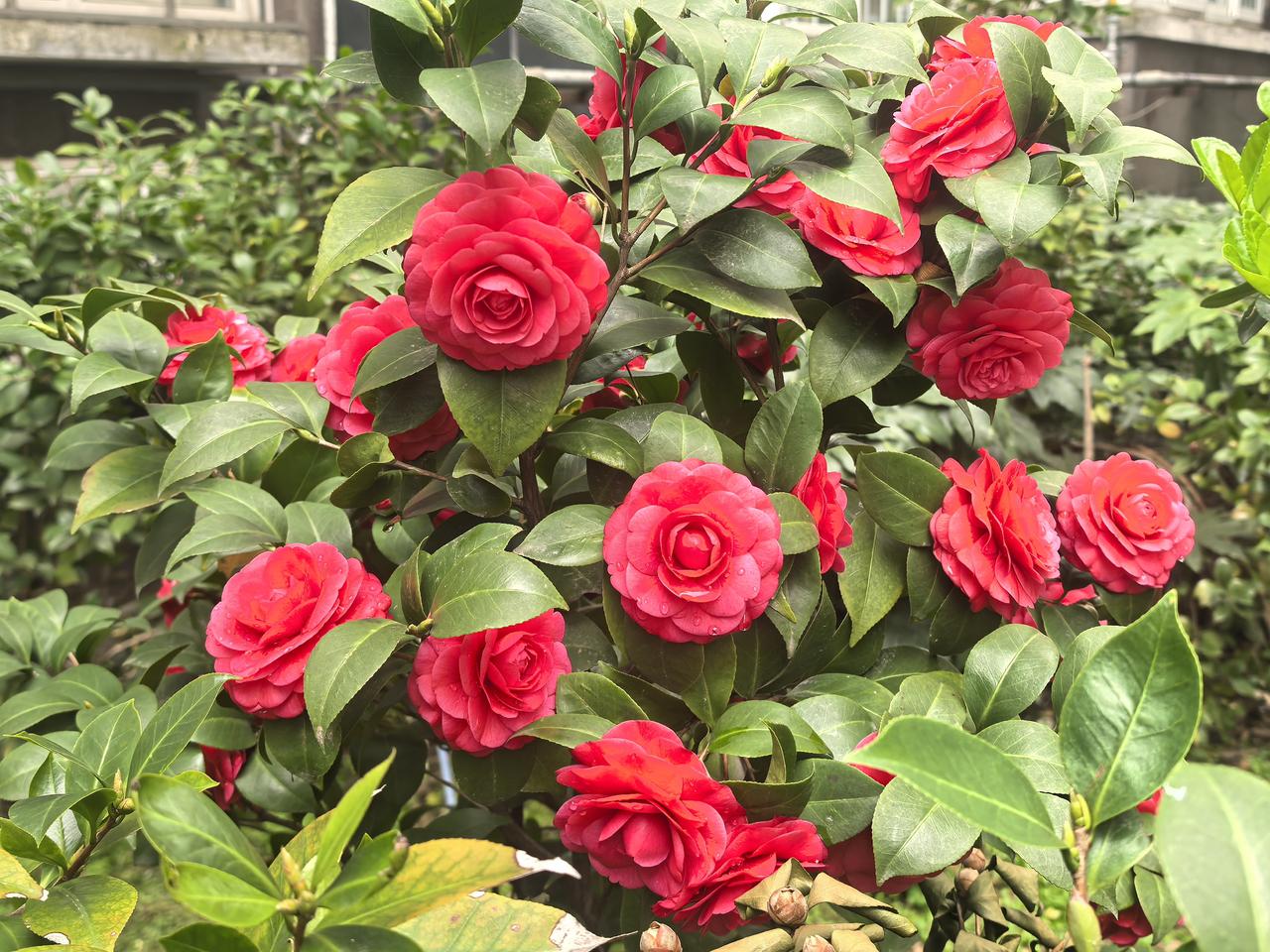 三月的扬州,雨后的茶花在春光下分外艳丽。