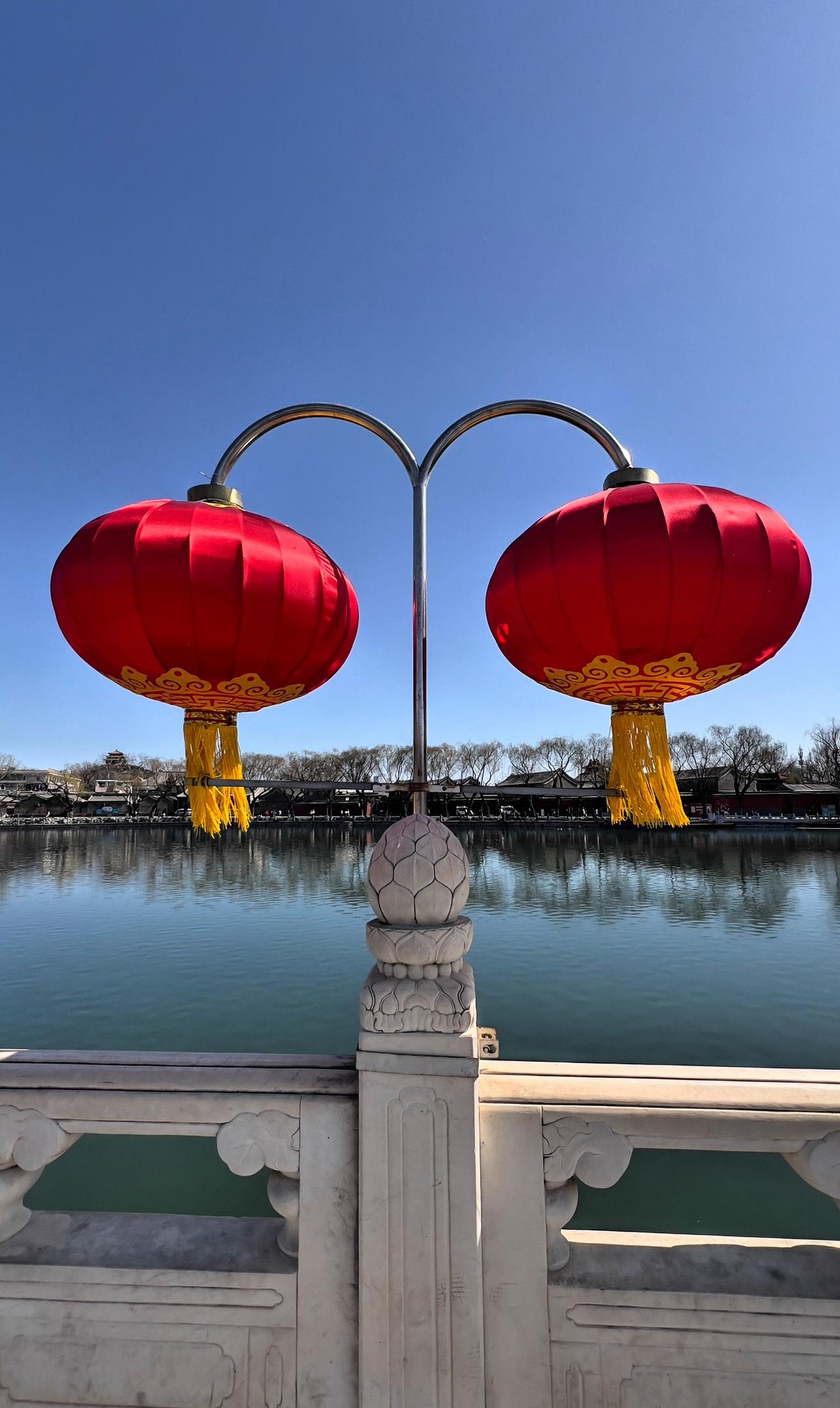 分享一张最近随手拍的照片北海公园随拍:红灯笼映碧水,古桥映晴空,美不胜收!🌊?