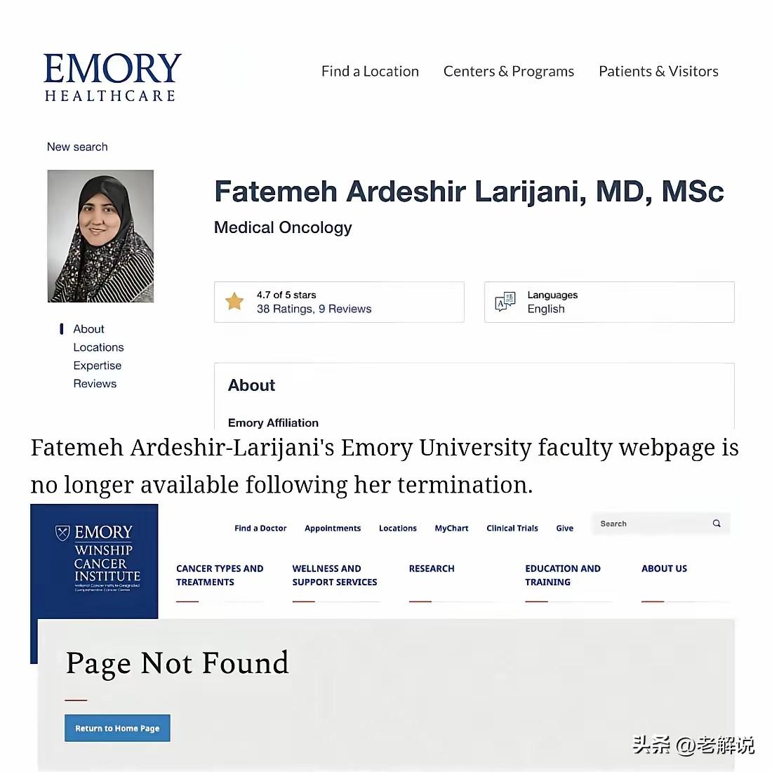 拉里贾尼女儿在美国当助理教授。 现在父亲死了,埃默里大学医学院也已经把女儿解雇了。 查了相关资料,埃默里大学医学院,确实已经把拉里贾尼的女儿法特梅·阿尔德希尔-拉里贾尼解雇了。 她是该院血液学与肿瘤医学系的助理教授,专攻肺癌研究。院长Sandra Wong(华裔)在1月24日发了内部邮件,通知教职员工:这位“伊朗高级政府官员的女儿”已不再是埃默里员工! 从相关资料来看,政治压力从1月就开始了。 1月15日,美国财政部制裁拉里贾尼,理由是他“协调伊朗政府对抗议者的残酷镇压”。 几天后,佐治亚州共和党众议员巴迪·卡特直接给埃默里大学和州医疗委员会写信,要求开除法特梅并吊销她的行医执照。 信里那句“威胁患者信任、机构诚信和国家安全”,就是后来新闻里反复引用的原文。 1月19日,几十名伊朗裔美国人到埃默里大学温希普癌症研究所门口抗议,举着“伊朗恐怖头目的女儿是你同事?”的牌子。Change.org上要求驱逐她的请愿,当时已经攒了近10万个签名。 说到拉里贾尼的女儿法特梅,其身份本身就很敏感,她2010年就到美国留学,2021年拿到绿卡,在美国行医多年。 但她的父亲是伊朗最高国家安全委员会秘书,还曾是革命卫队军官。这种“敌人的女儿在自己国家顶级医院工作”的反差,在美伊对抗升级的背景下,必然成为靶子。 埃默里大学一直没公开说是“开除”还是“自愿离职”,只说是“人事问题”。但她的教职页面1月24日就消失了,时间点恰好卡在抗议和议员施压之后。 所以我们现在回过头来看,这事也就和拉里贾尼之死连上了。3月16日拉里贾尼遇袭身亡后,美国马上就有动作——埃默里大学虽然1月就把人开了,但这条旧闻现在又被翻出来,等于告诉外界:美国不仅要在战场上消灭你,还要在舆论上彻底切割你和你家人的一切痕迹。 那么这件事最讽刺的地方是什么?拉里贾尼这个人,在伊朗内部其实是有“务实派”标签的——他支持2015年核协议,跟西方打过多年交道。他女儿在美国顶尖医学院当教授,本身也是这种“交往”的产物。 但现在,美伊彻底撕破脸,这种“交往”就成了原罪。女儿因为父亲丢了工作,父亲因为女儿被美国制裁?都不是。 真相是:当两个国家走向战争,中间那些试图跨文化生存的个体,最先被碾碎。 法特梅现在什么处境?绿卡还在吗?能回伊朗吗?她父亲已经死了,伊朗国内还有她的位置吗?这些问题,没人回答。 但有一件事是确定的:政治清算的刀,从来不会只砍一个人。