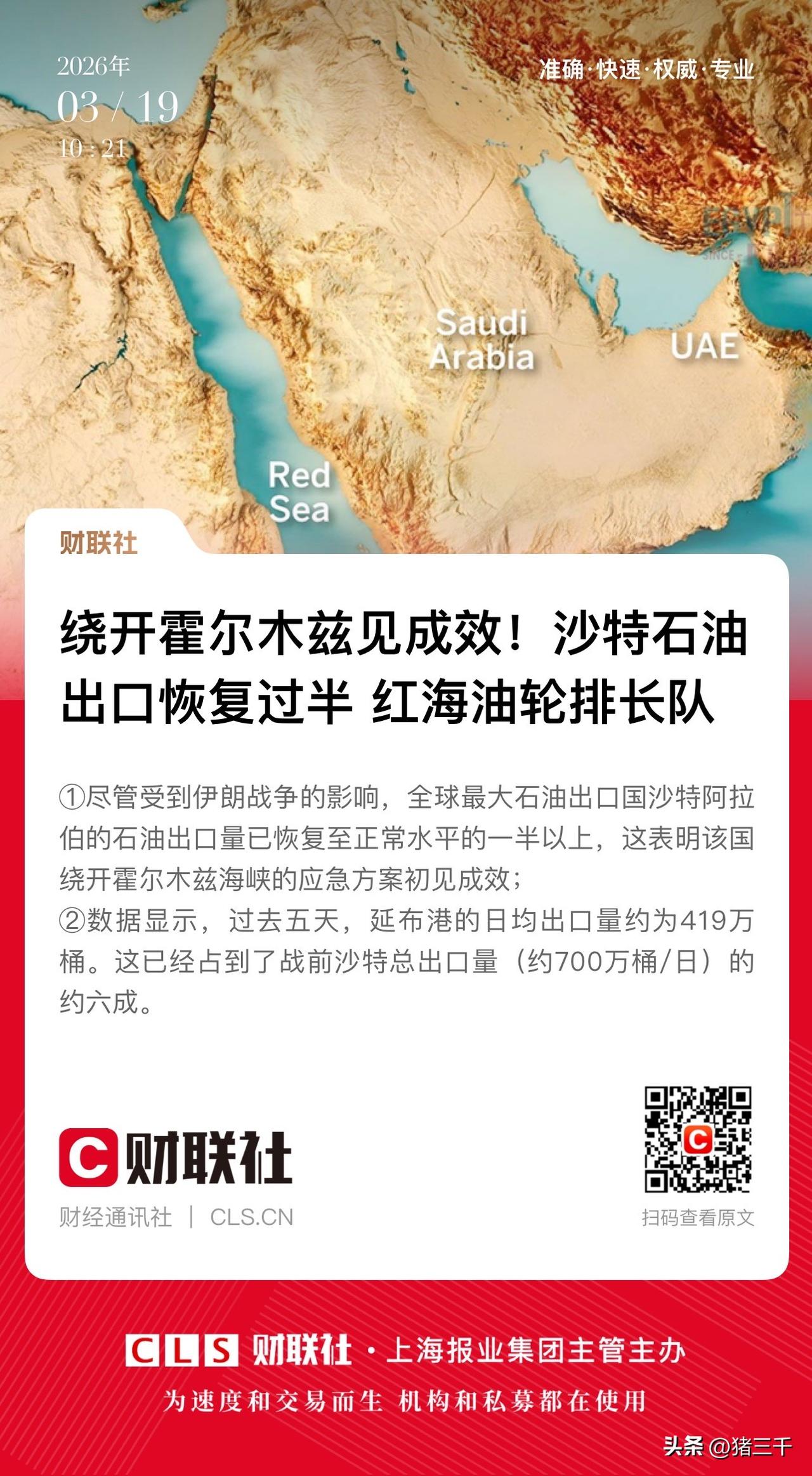 石油方面传来消息, 沙特采用绕行方案走红海, 目前沙特石油出口恢复至约6成。 这是一个积极信号, 意味着更多的产油国, 可以借道沙特出口。 关键问题是输油管道运力制约, 公路到港口运力和成本不低。 白宫一再重申不袭击油气设施, 但貌似盟友以色列不是这个想法, 就导致油气设施互殴, 这就直接刺激油价跳涨! 看午后开盘油气股是否让道, 也让资金进一步恢复对科技的信心。 …