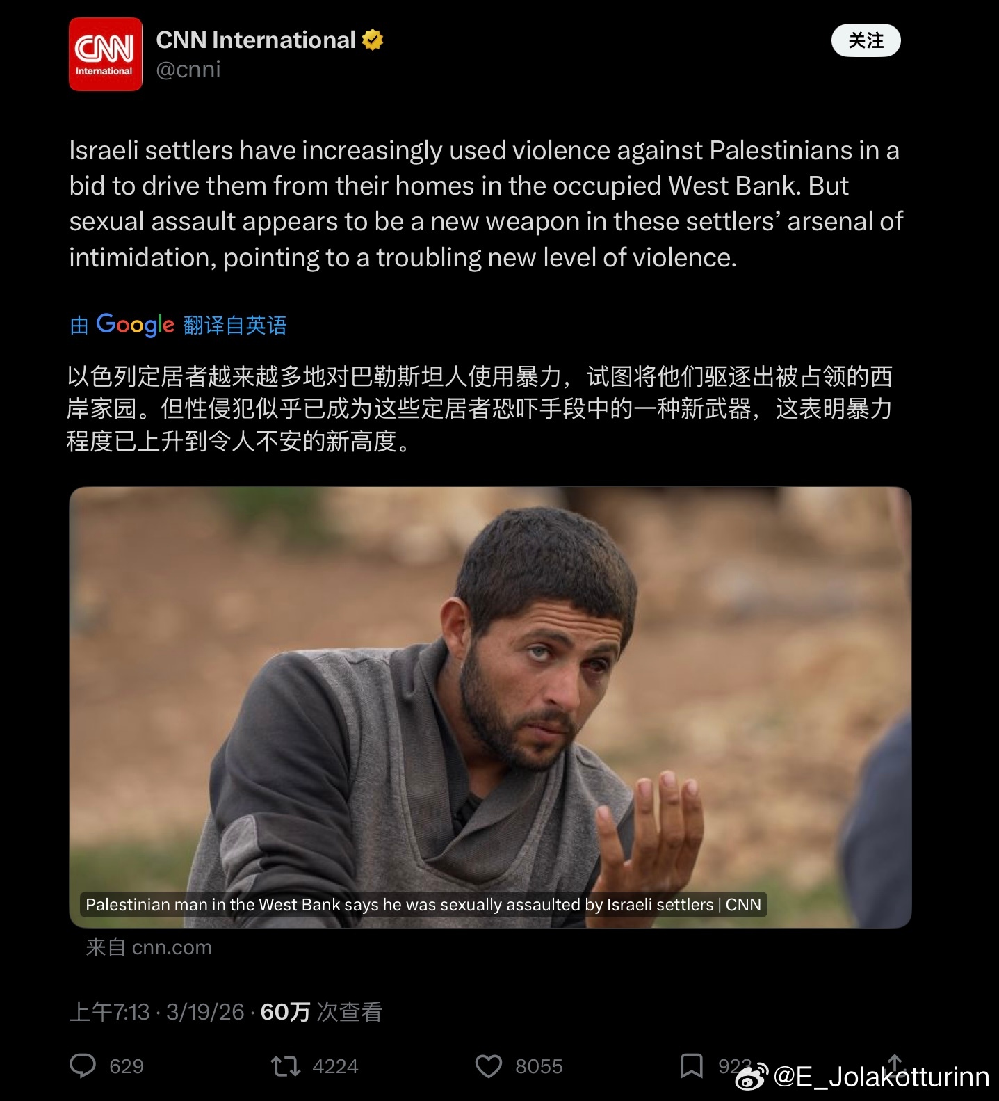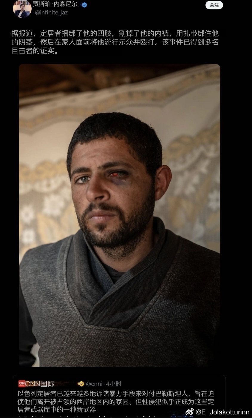 当CNN都忍不住站出来揭露以色列定居者对巴勒斯坦人的性暴力罪行时,可想而知真实情况有多严重了。